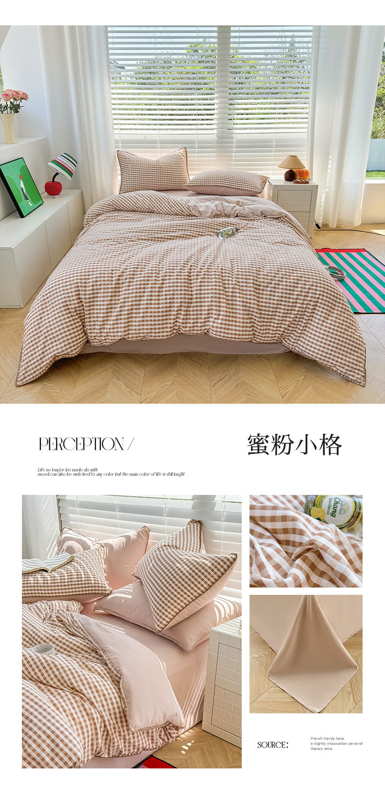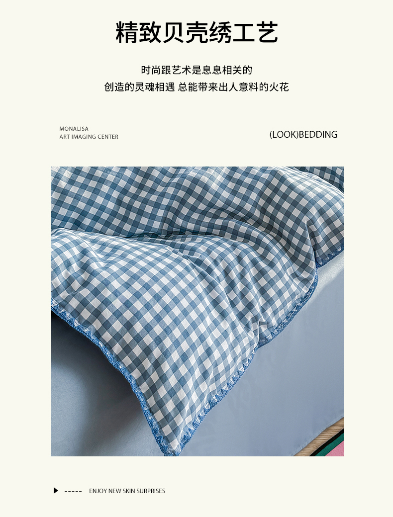 当前位置: 91家纺网 > 商品网购 > 床品套件 > 四件套 > 水洗棉四件套 > 十一家居 2025春夏新款ins风A类亲肤水洗棉贝壳绣格子四件套——暮光系列 蜜粉小格