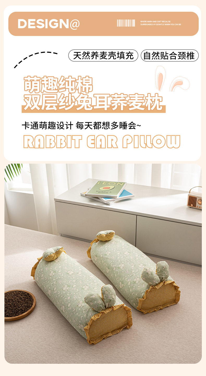 当前位置: 91家纺网 > 商品网购 > 枕头/枕芯/保健枕/颈椎枕 > 普通枕芯 > 萌番宝 2025新款小清新全棉纯棉兔耳全荞麦皮壳枕头护颈椎助睡眠硬枕头枕芯 双层纱荞麦枕—萌趣乐园 50x18x10cm/只