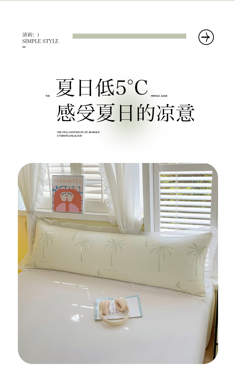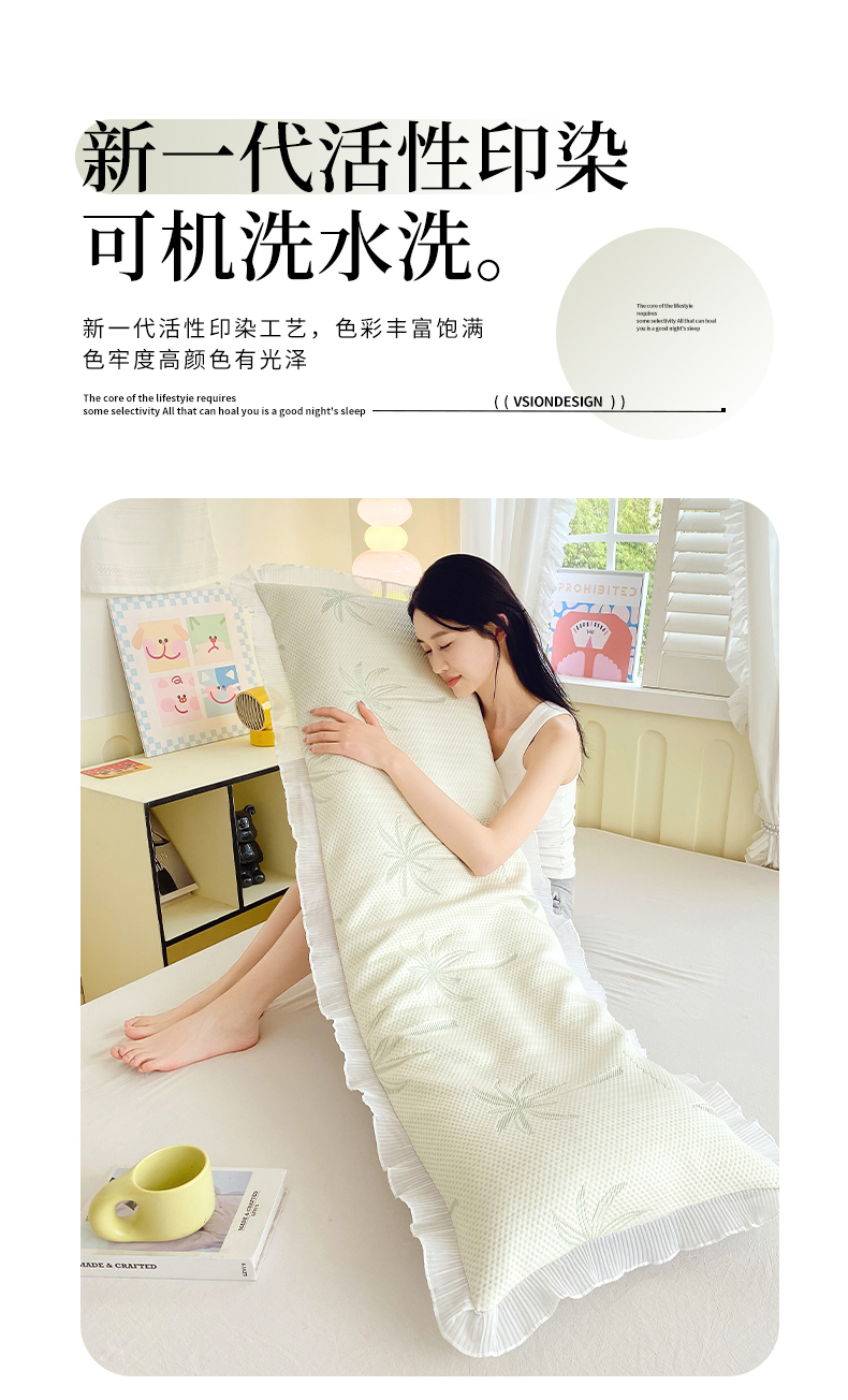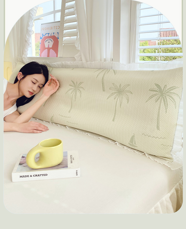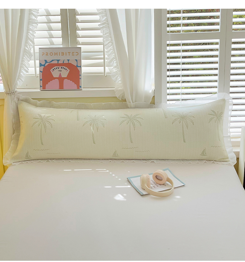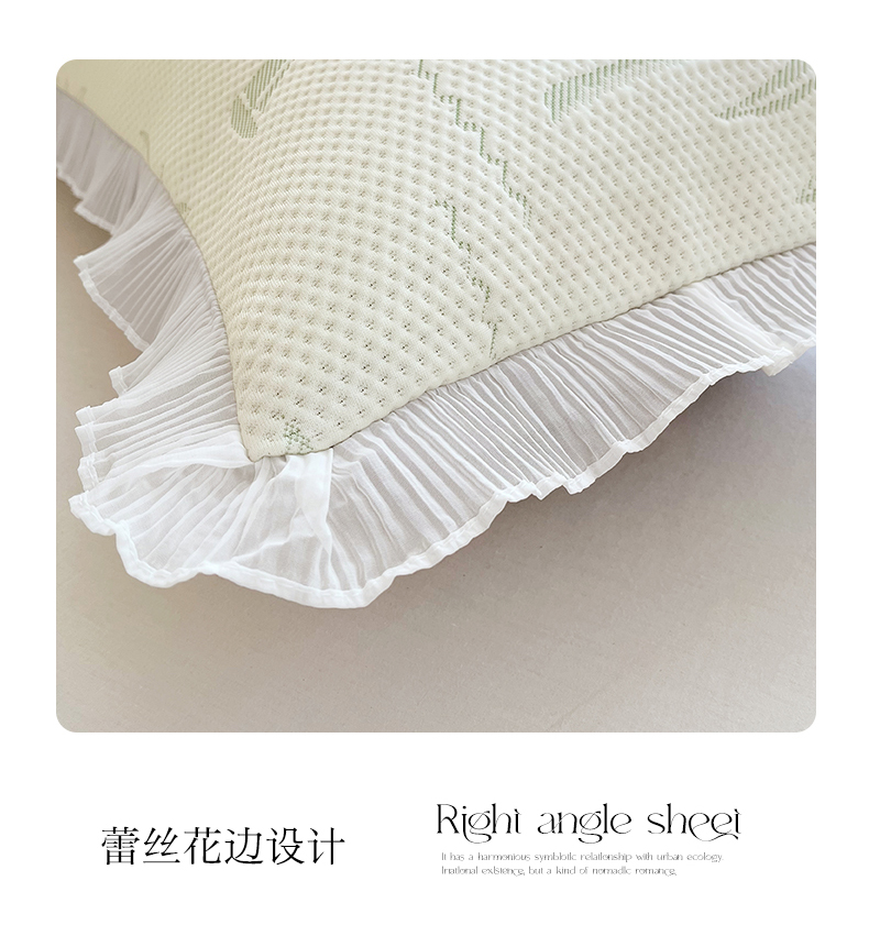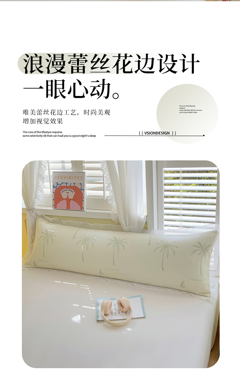 商品名称:雨彤家纺 2025新款冰豆豆蕾丝花边双人长枕套单品枕套枕套单件 一帆风顺-浅绿