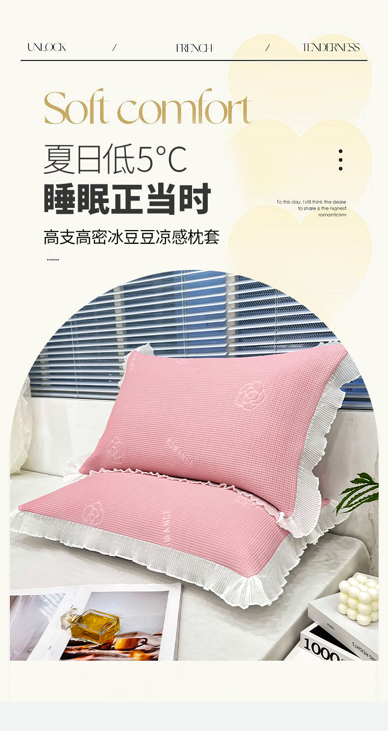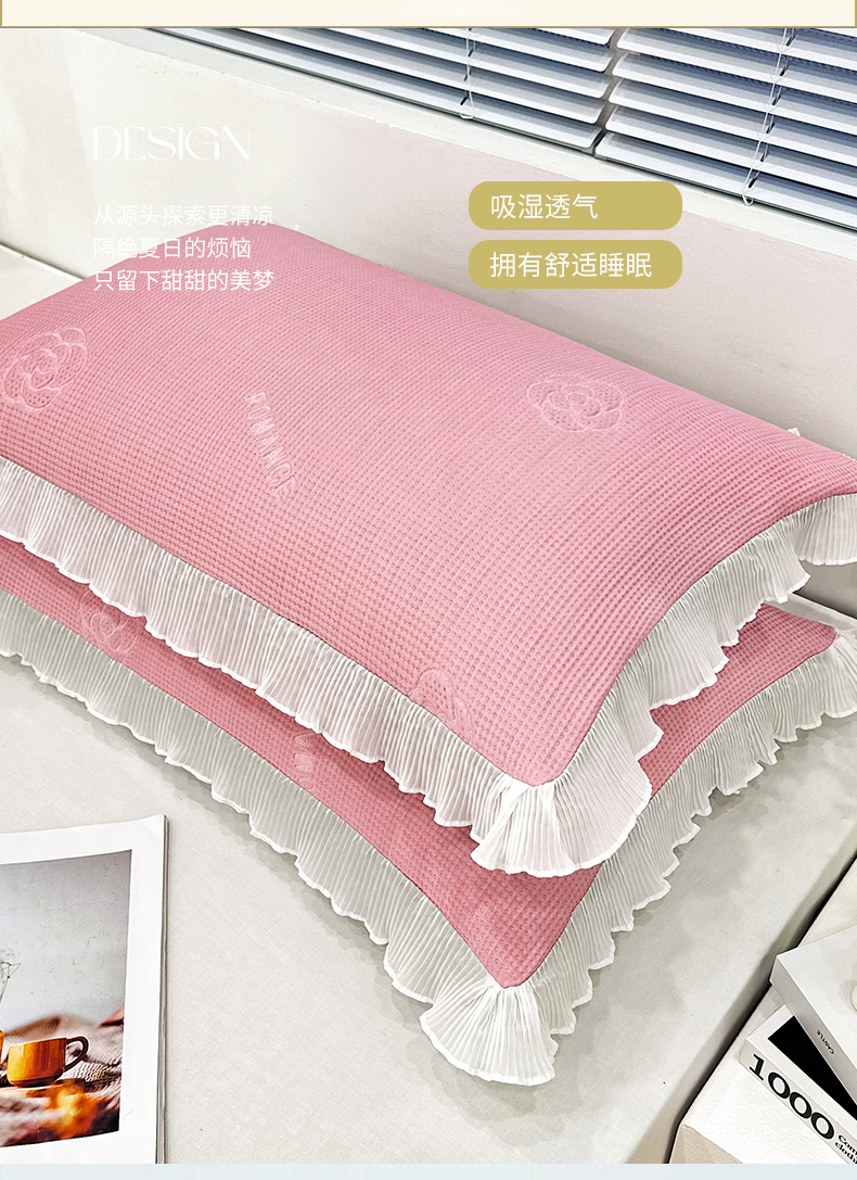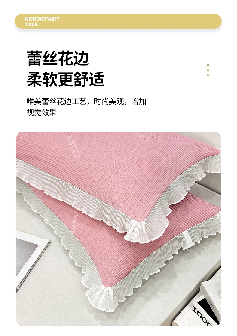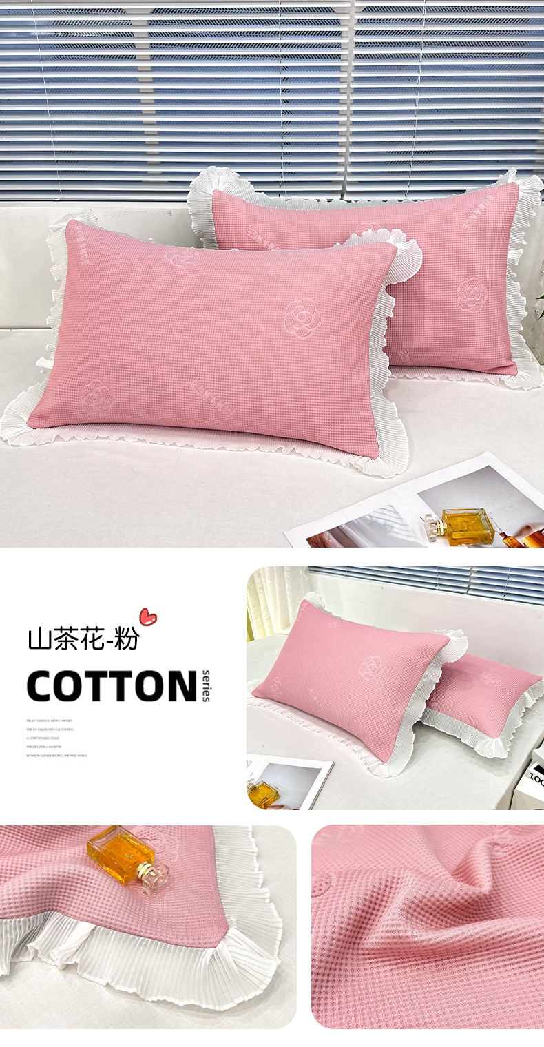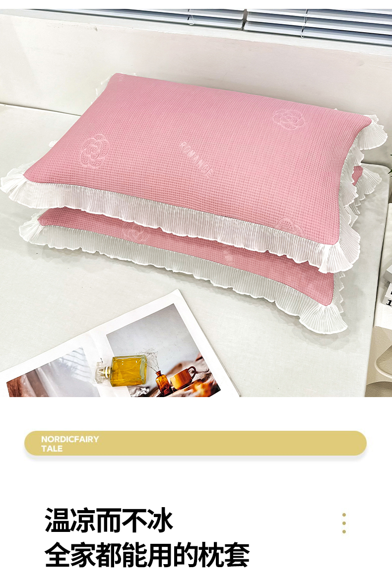 商品名称:雨彤家纺 2025新款冰豆豆蕾丝花边单人枕套单品枕套枕套单件 山茶花-粉