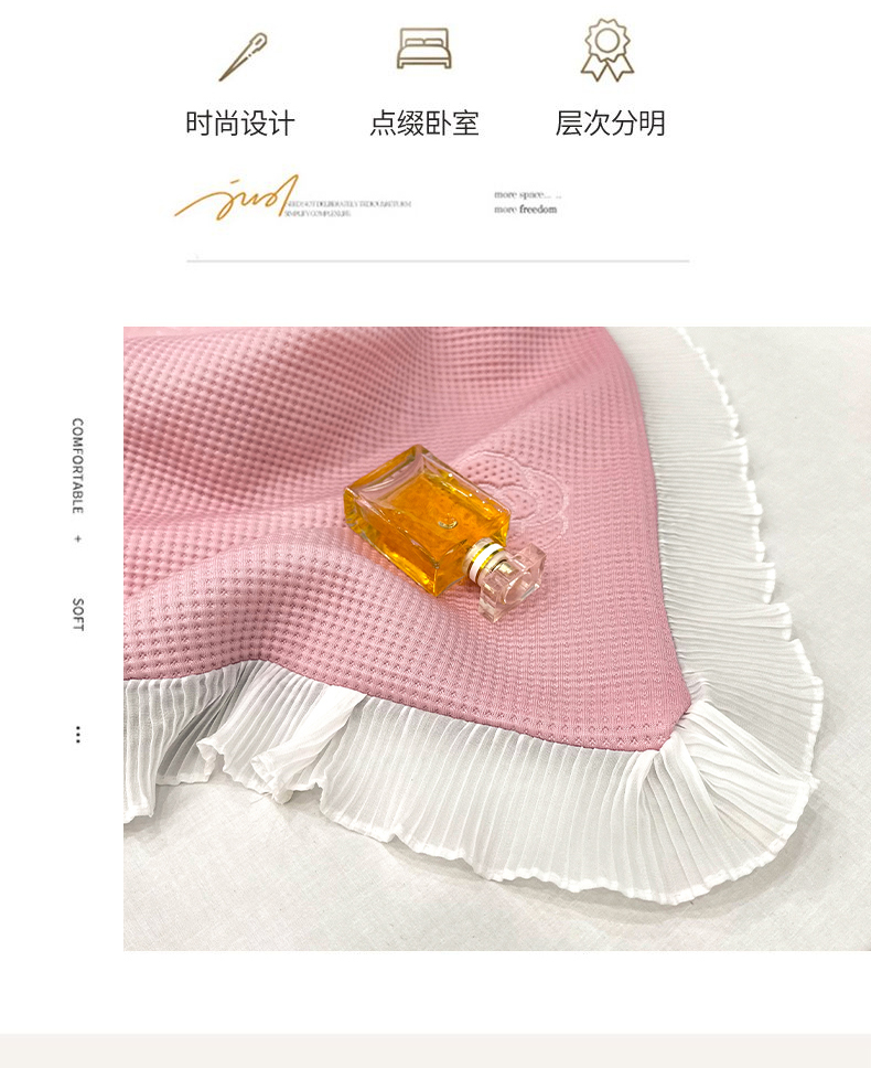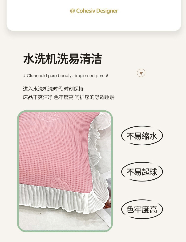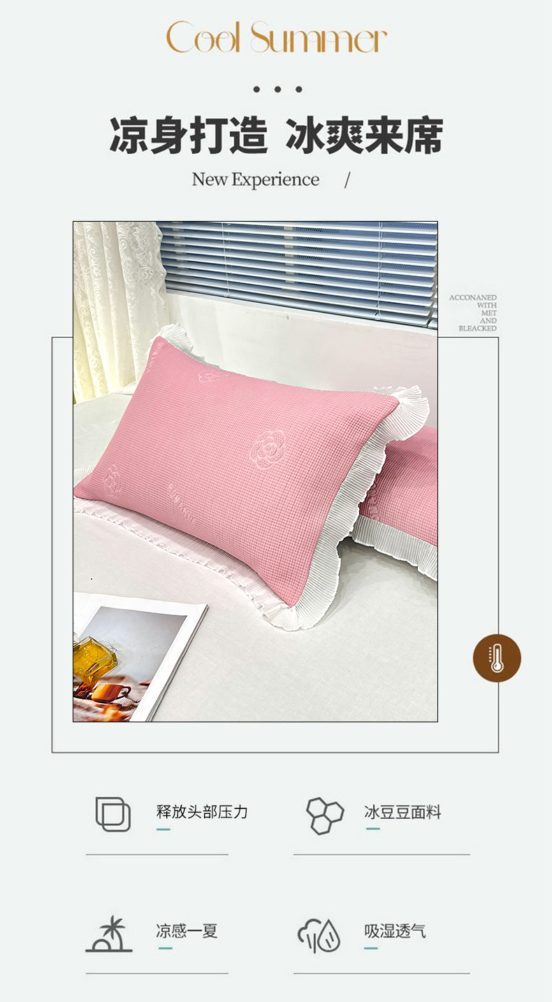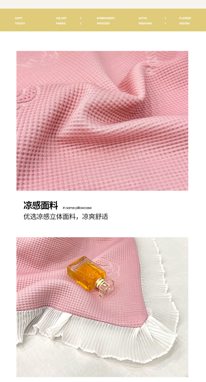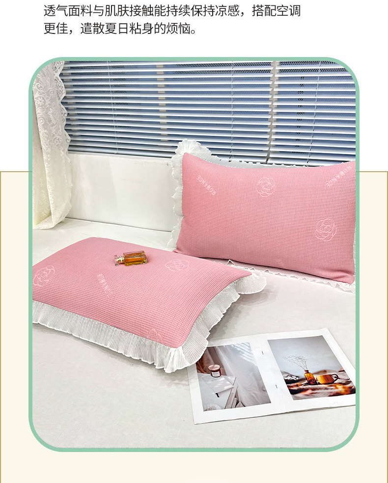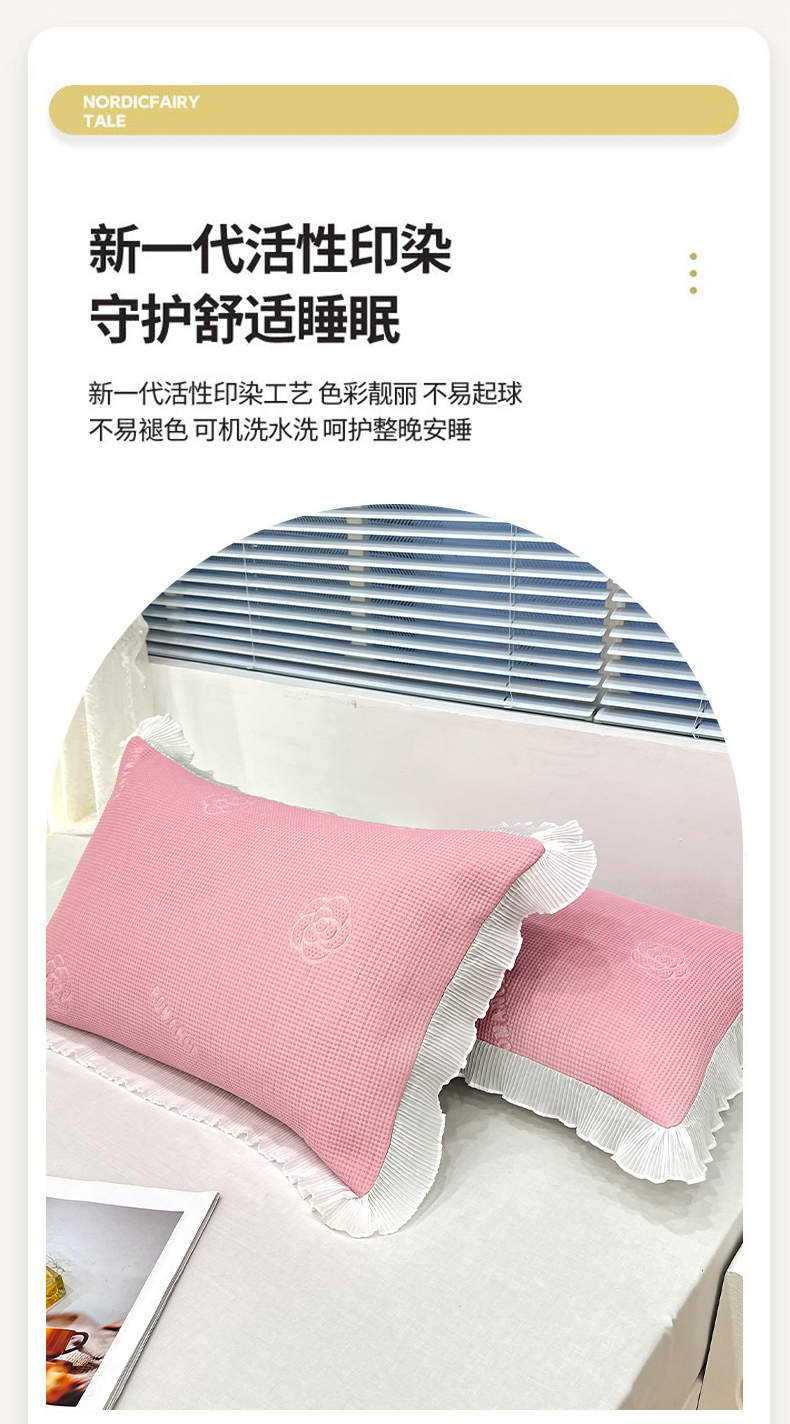 商品名称:雨彤家纺 2025新款冰豆豆蕾丝花边单人枕套单品枕套枕套单件 山茶花-粉
