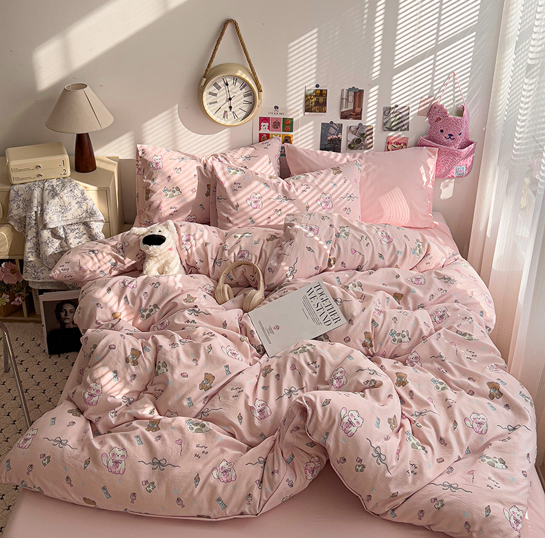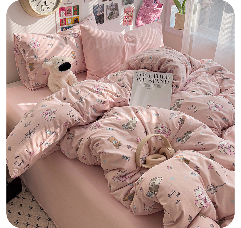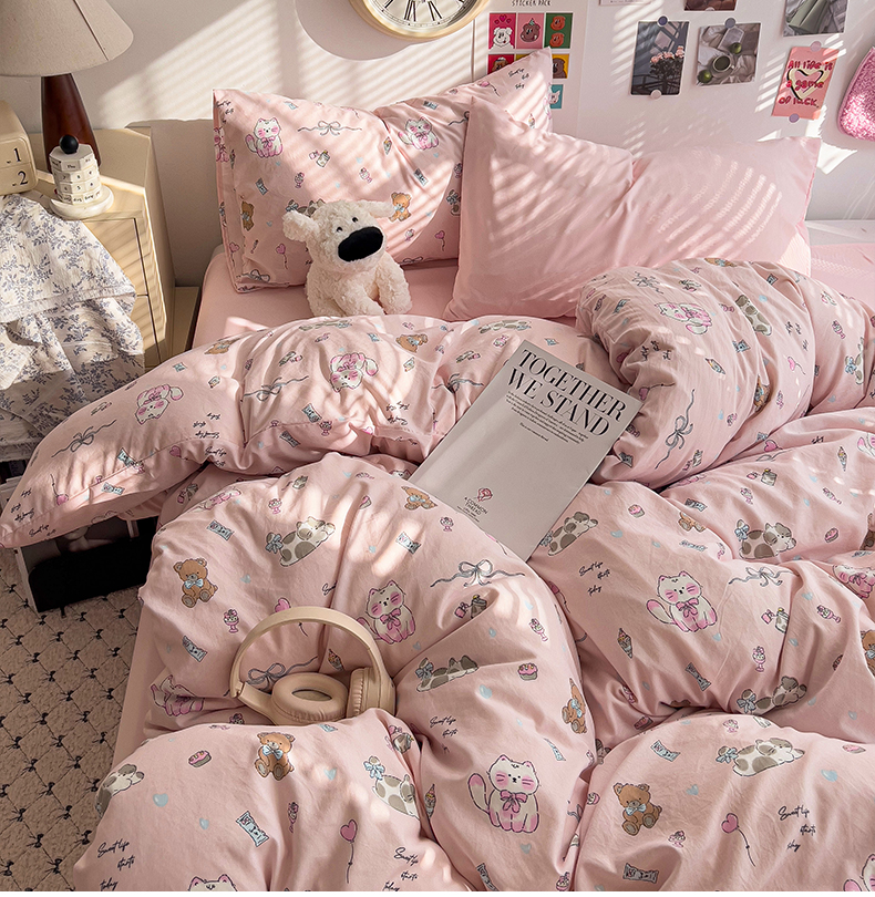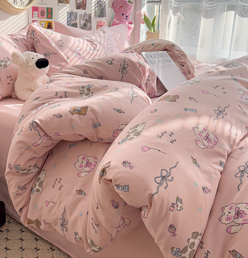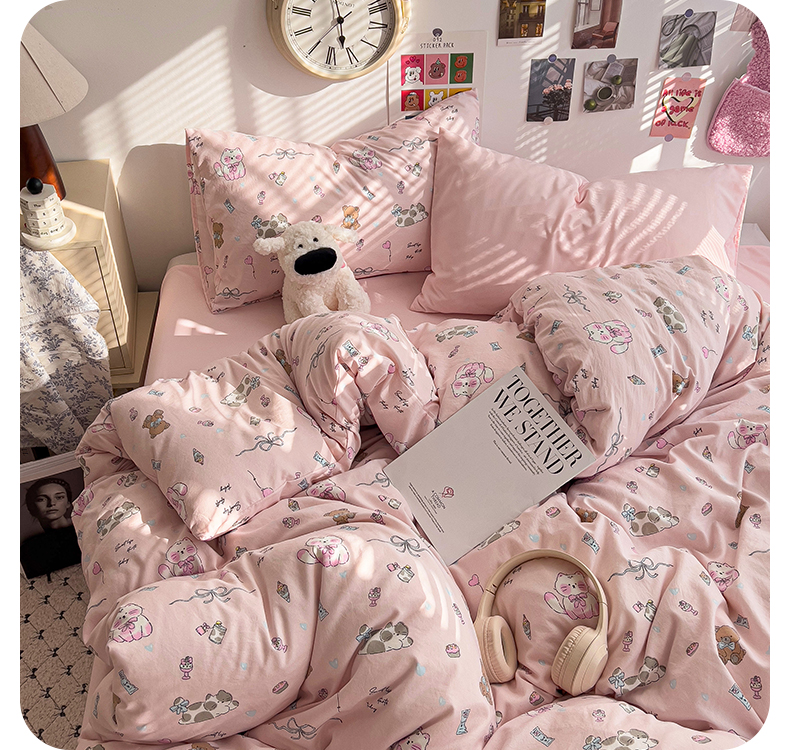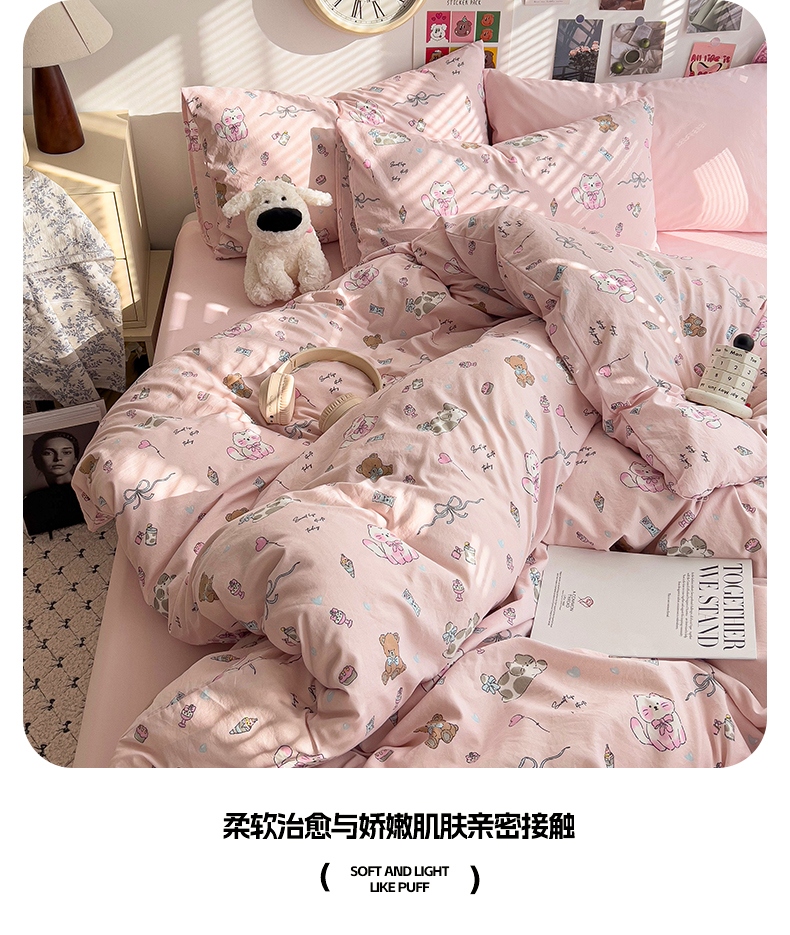 当前位置: 91家纺网 > 商品网购 > 床品套件 > 四件套 > 水洗棉四件套 > 韩巢家纺 2025新款水洗棉印花被套床单四件套学生宿舍床上三件套 -提供卖家秀 小猫线球