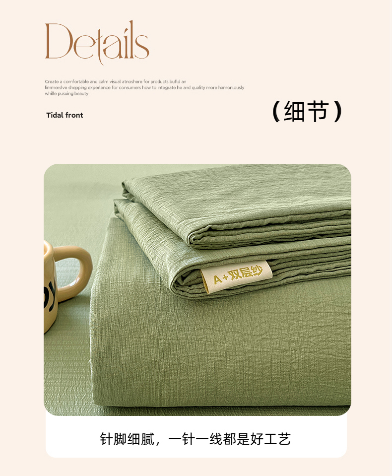 • 91家纺网 家纺一手货源 找家纺 彩韵家纺 2025新款木m双层纱床单 抹茶绿 91家纺网 家纺一手货源 找家纺 彩韵家纺 2025新款木m双层纱床单 抹茶绿