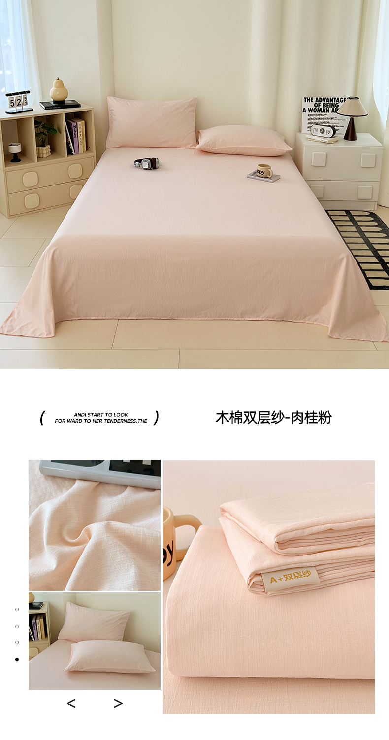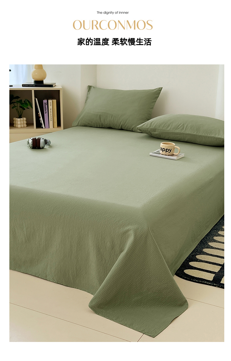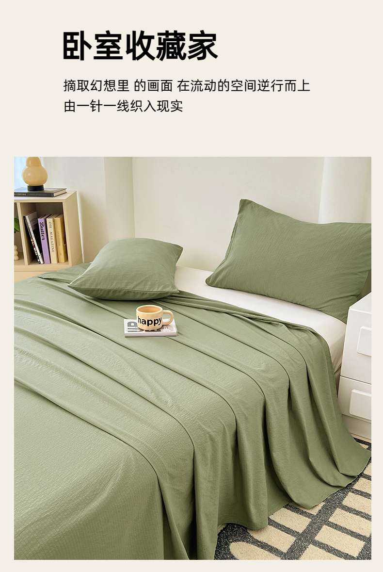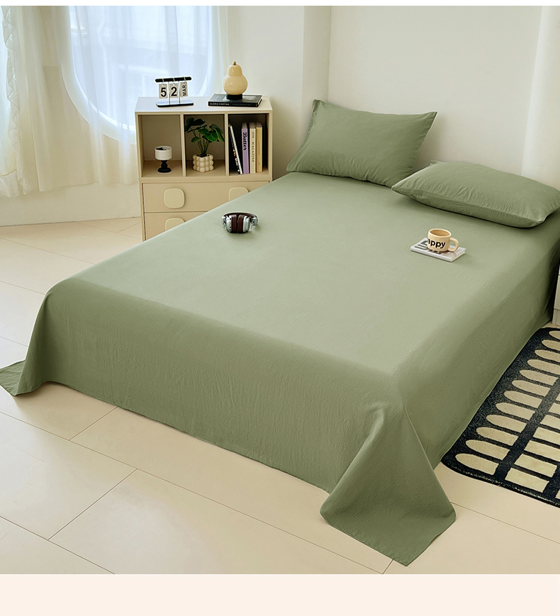 彩韵家纺 2025新款木m双层纱床单 抹茶绿