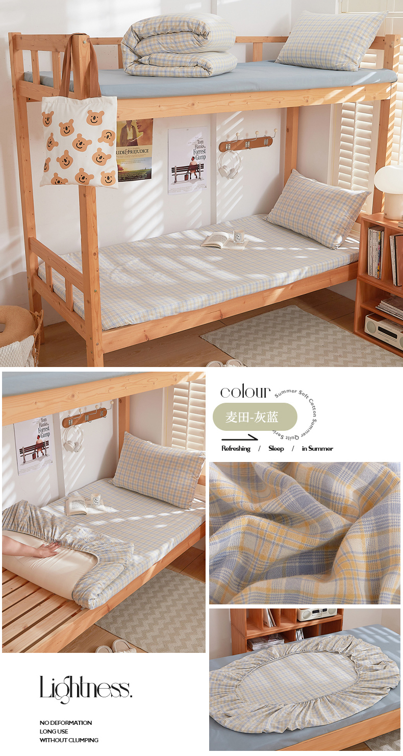 • 91家纺网 家纺一手货源 找家纺 DoDo 兜兜 2025新款全棉纯棉水洗棉学生床笠【可定做尺寸】 麦田-灰蓝