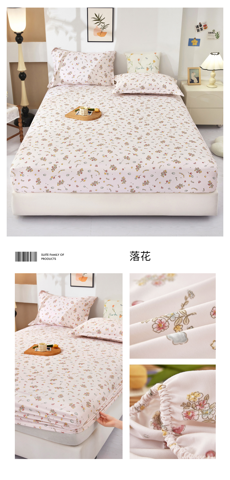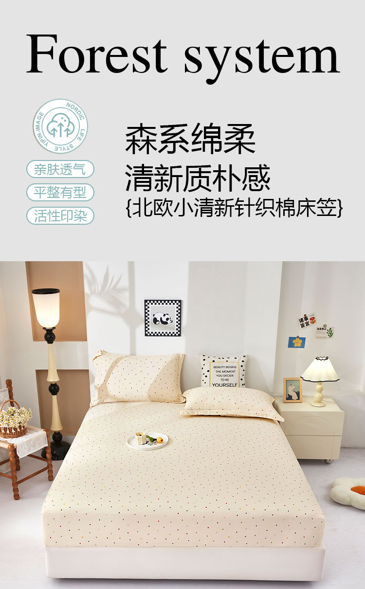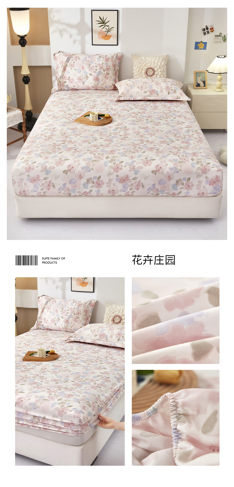 商品名称:乐居家纺 2025新款针织棉双层纱单件床笠 粉韵格调