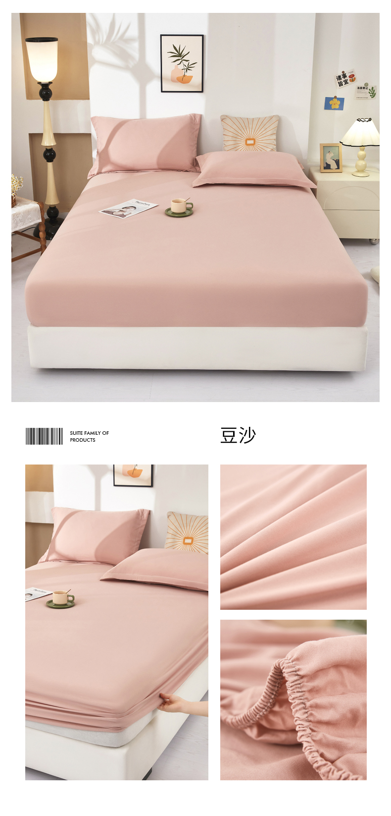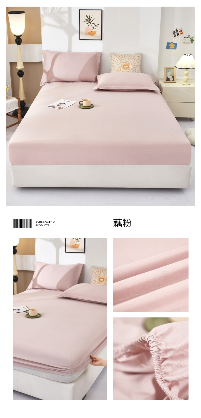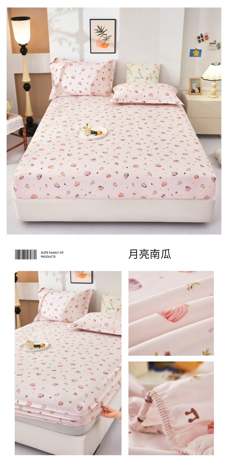 商品名称:乐居家纺 2025新款针织棉双层纱单件床笠 粉韵格调