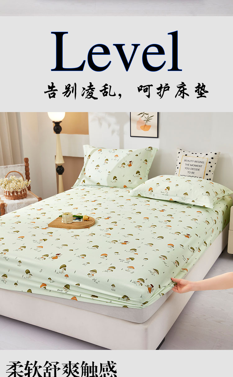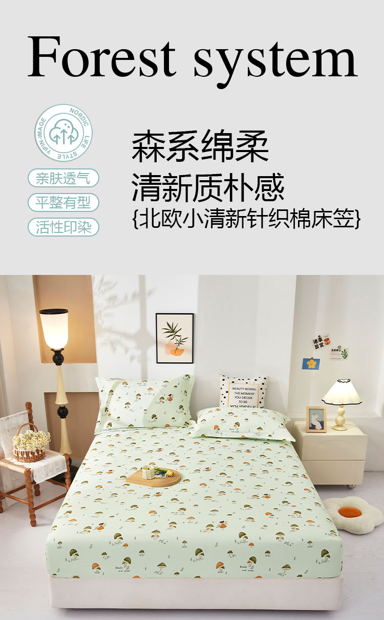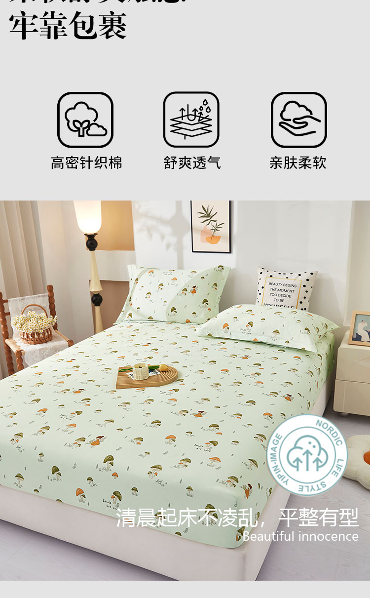 乐居家纺 2025新款针织棉双层纱单件床笠 蘑菇精灵