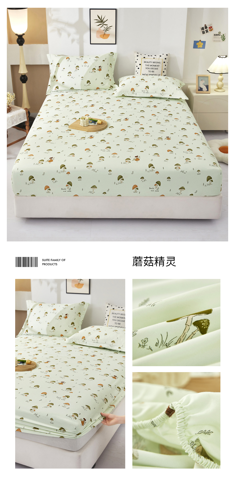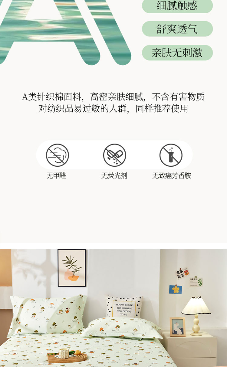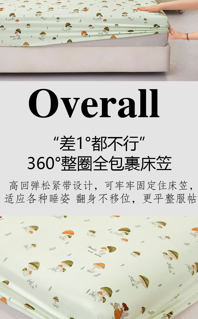 商品名称:乐居家纺 2025新款针织棉双层纱单件床笠 蘑菇精灵