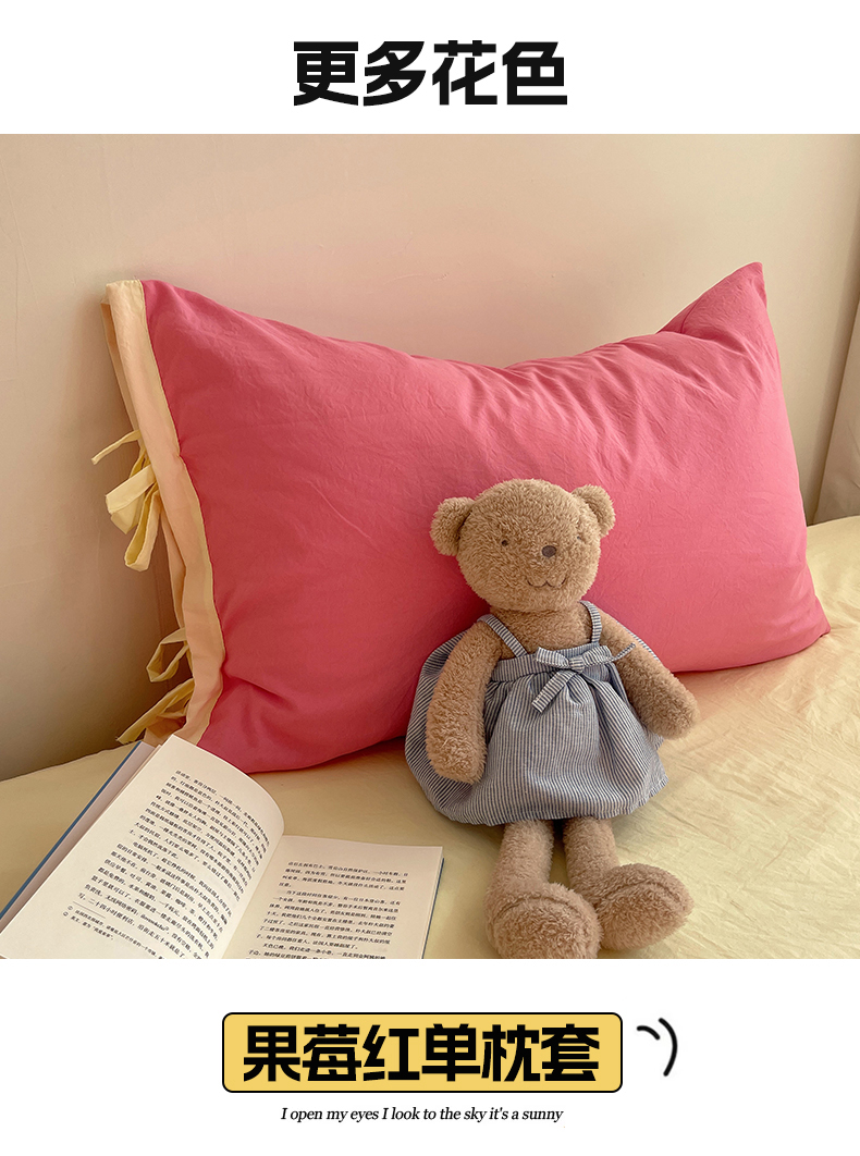 (总)轻奢坊 2025新款水洗棉纯色撞色包边绑带款单品枕套枕套单件