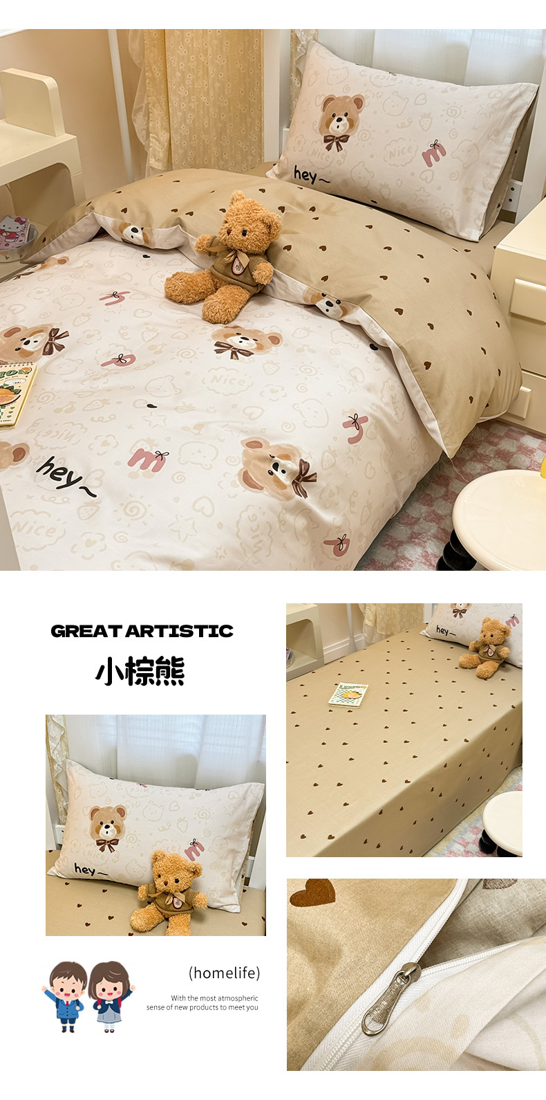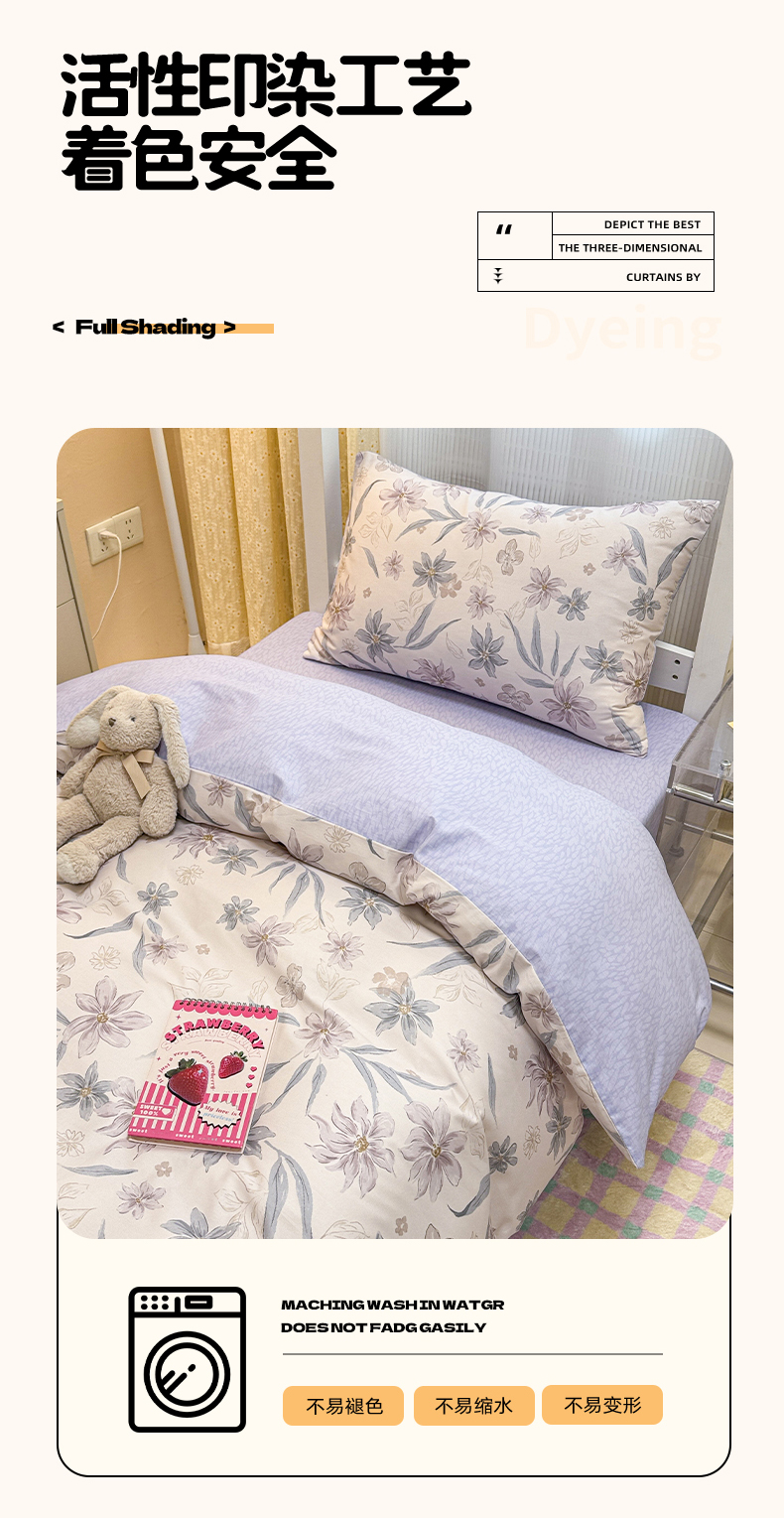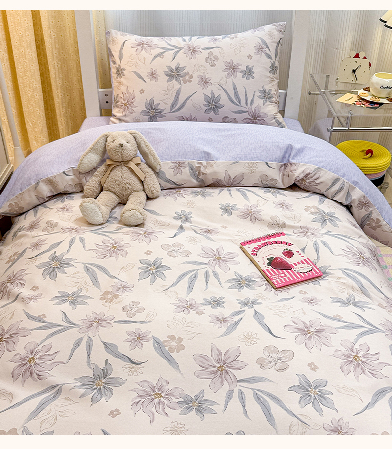 当前位置: 91家纺网 > 商品网购 > 床品套件 > 三件套 > 小懒猪 2025新款ins风小红书同款卡通小清新13372全棉纯棉AB版学生上下铺三件套 茶色花眠