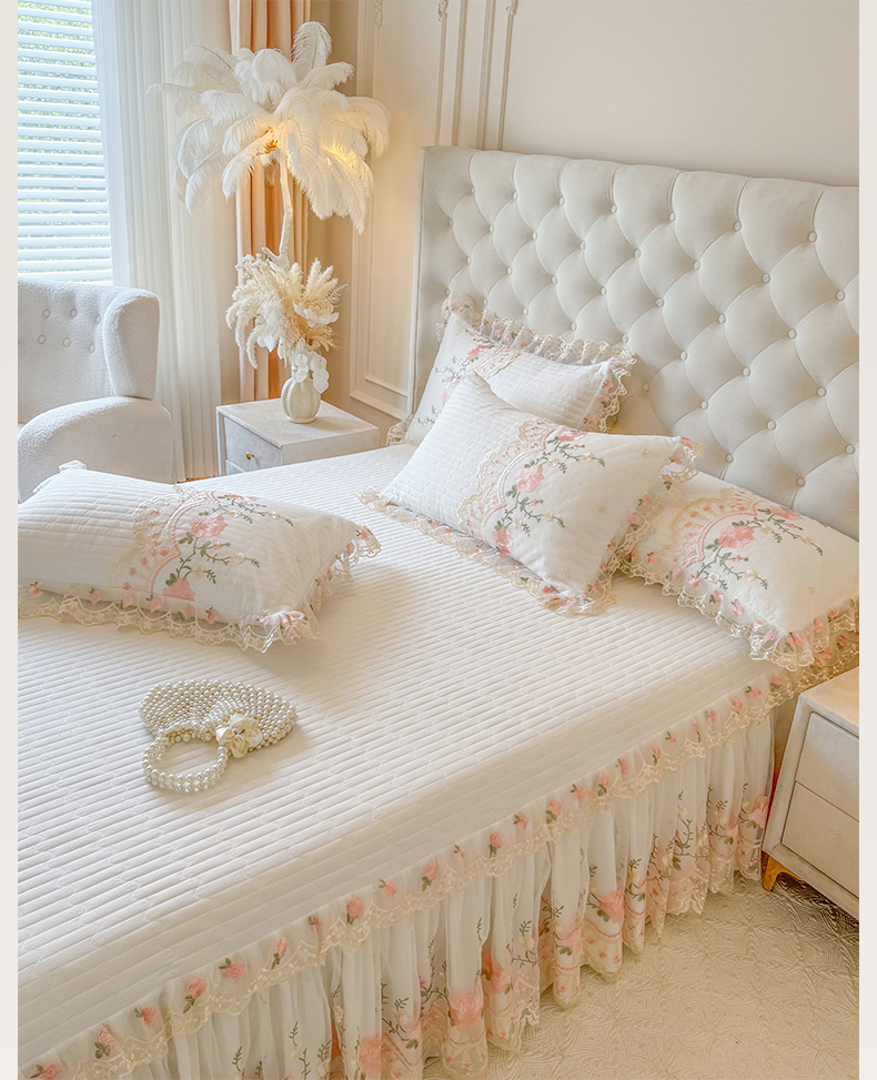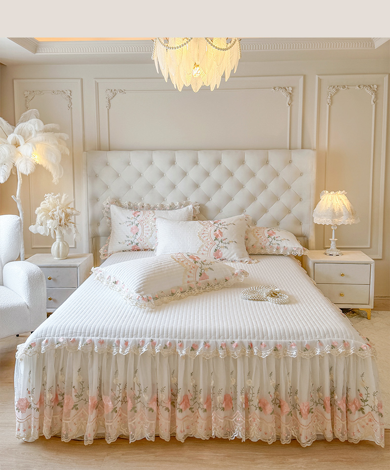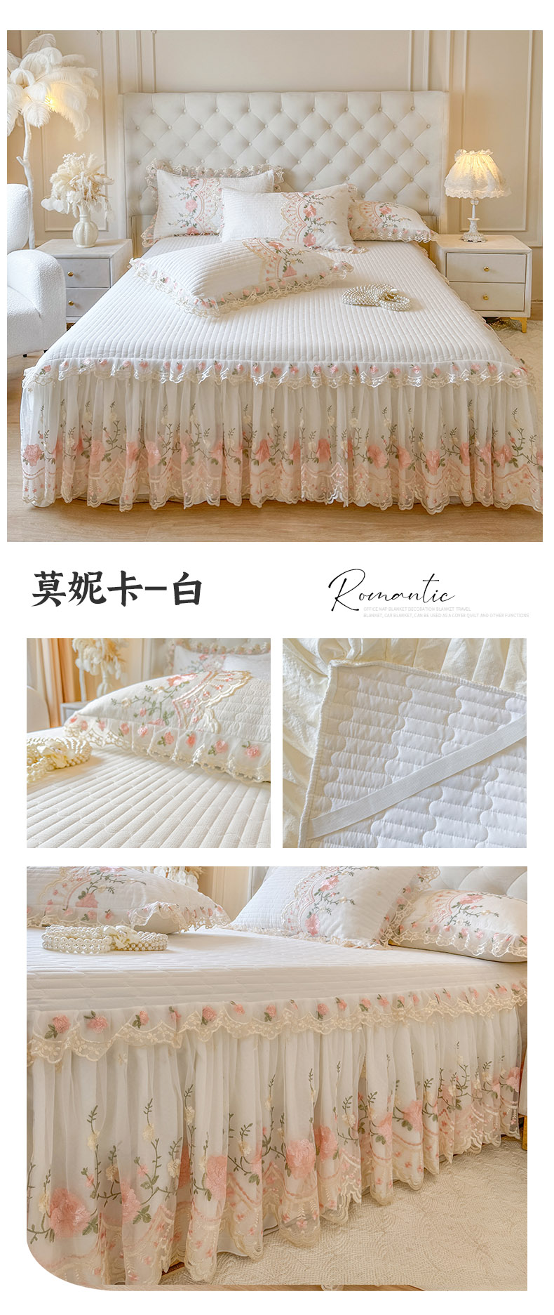 • 91家纺网 家纺一手货源 找家纺 恋尚 2025春夏新款香云纱床裙单床裙床裙单件-莫妮卡(控价130起) 莫妮卡-白