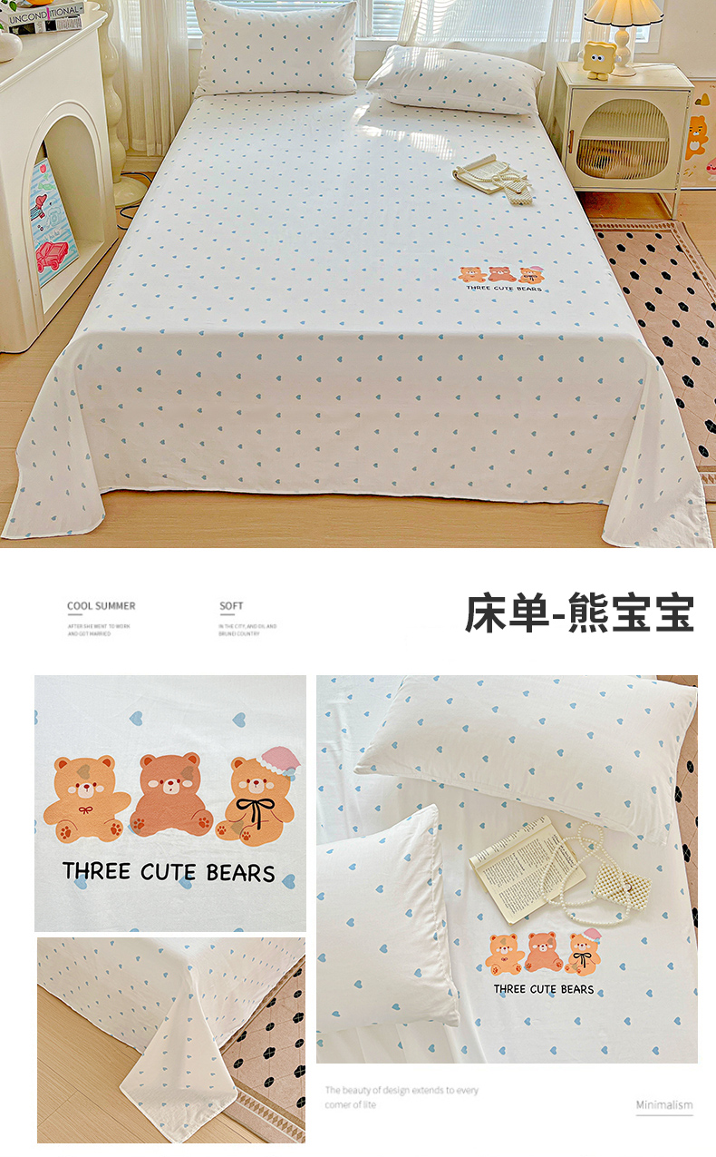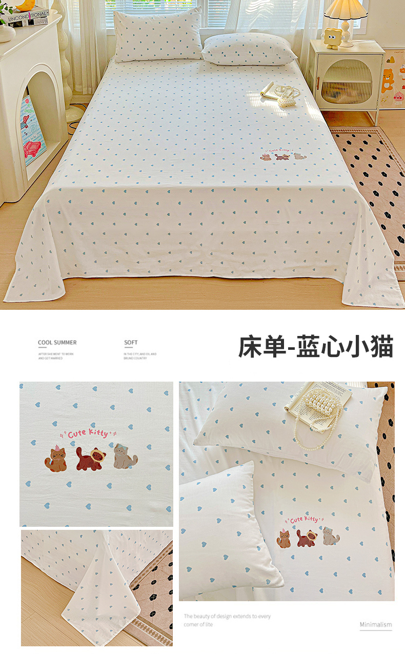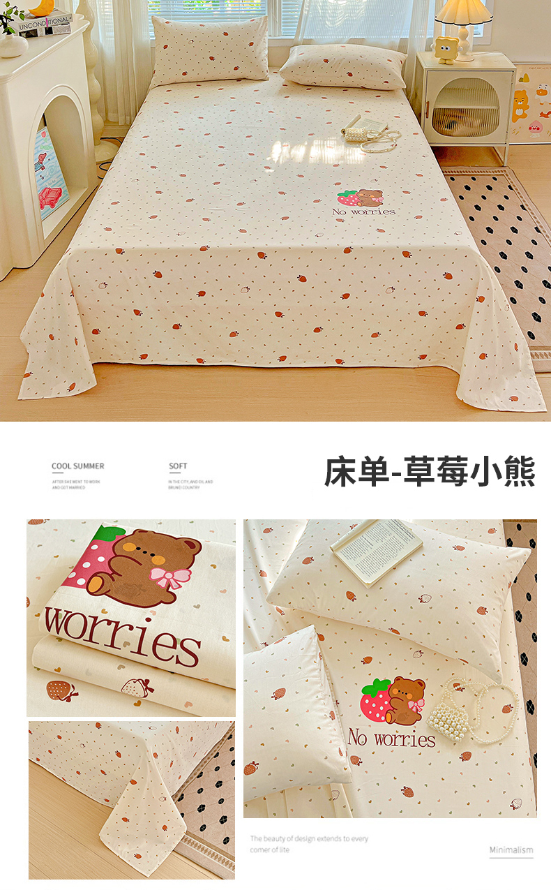 (总)有间小屋 2025新款全棉纯棉水洗棉单品系列床单单件-单床单,床单-草莓小熊,床单-茶杯兔,床单-点点腊肠狗,床单-蓝心小猫,床单-熊宝宝,床单-樱桃小猫
