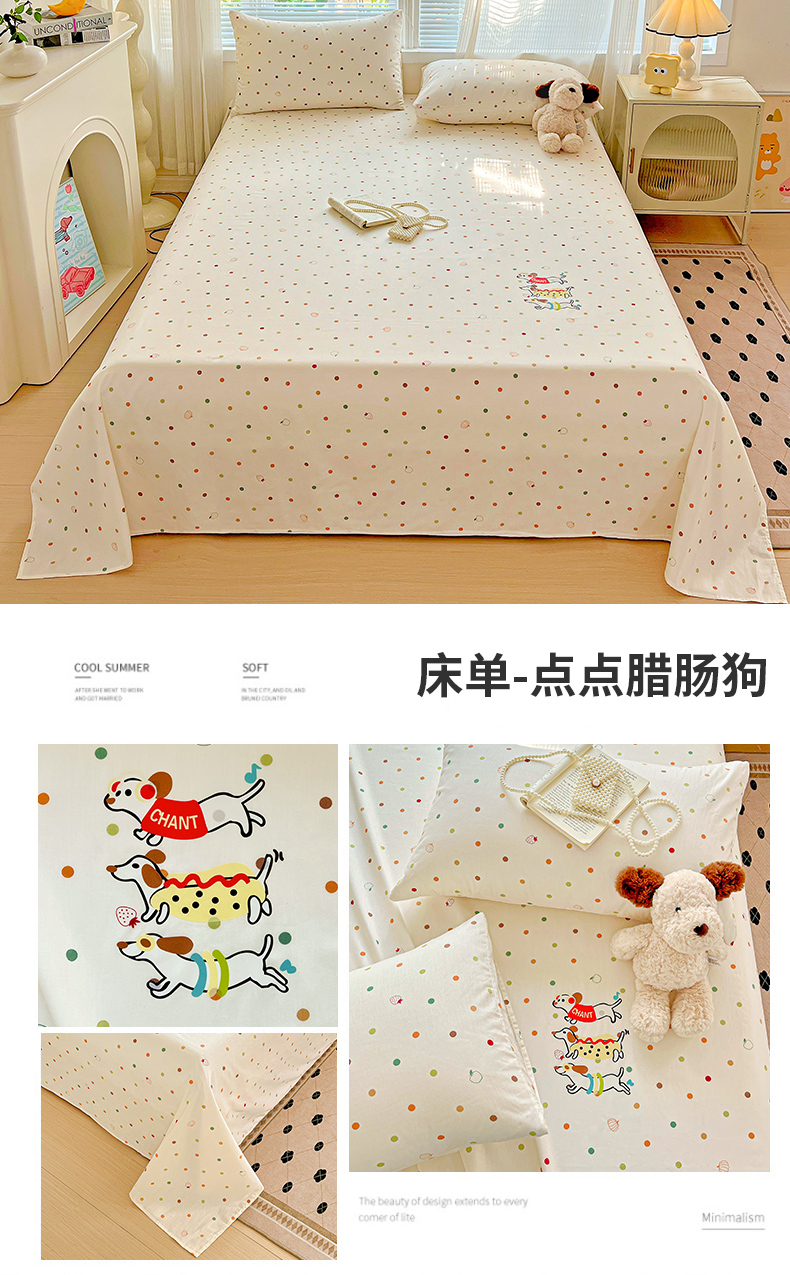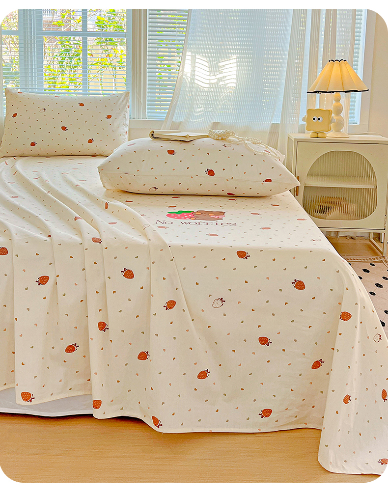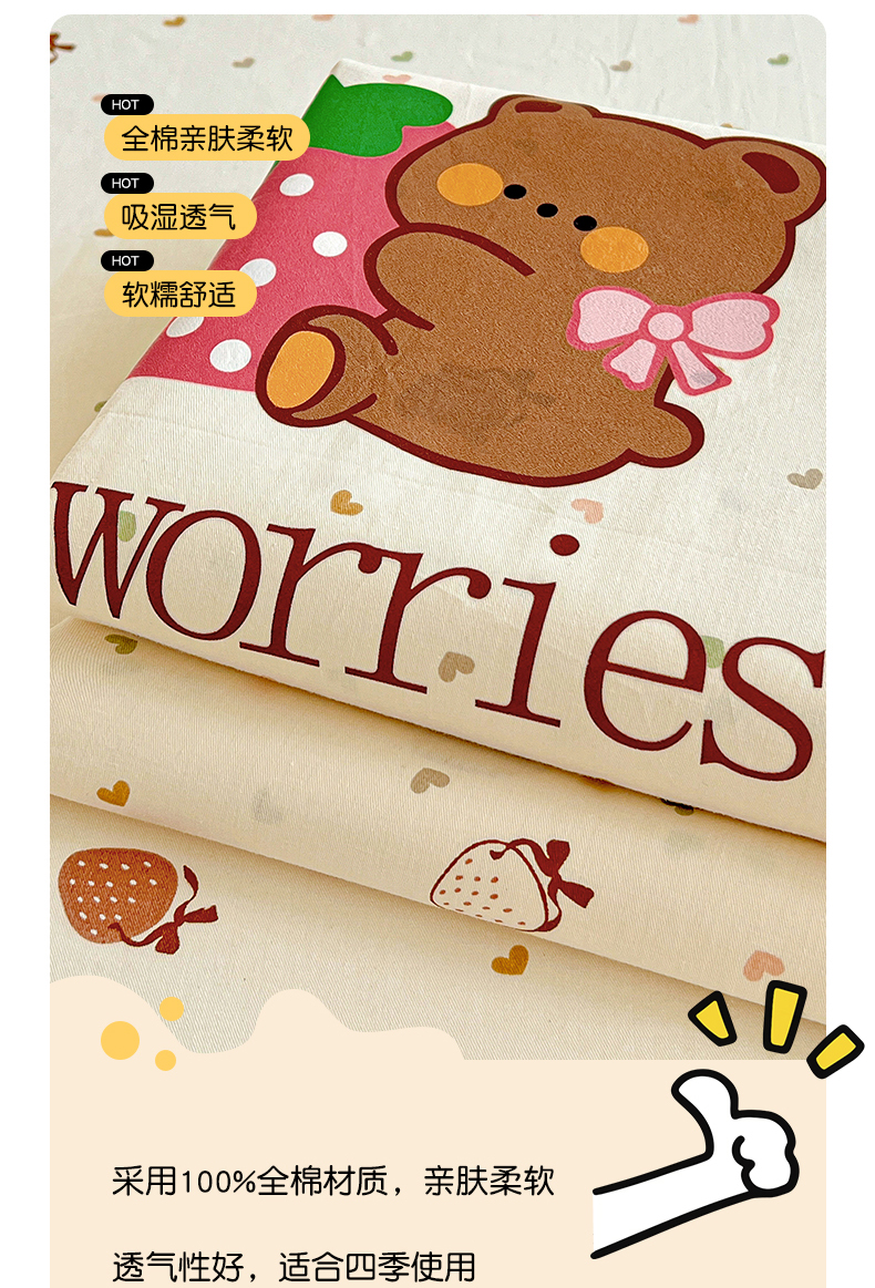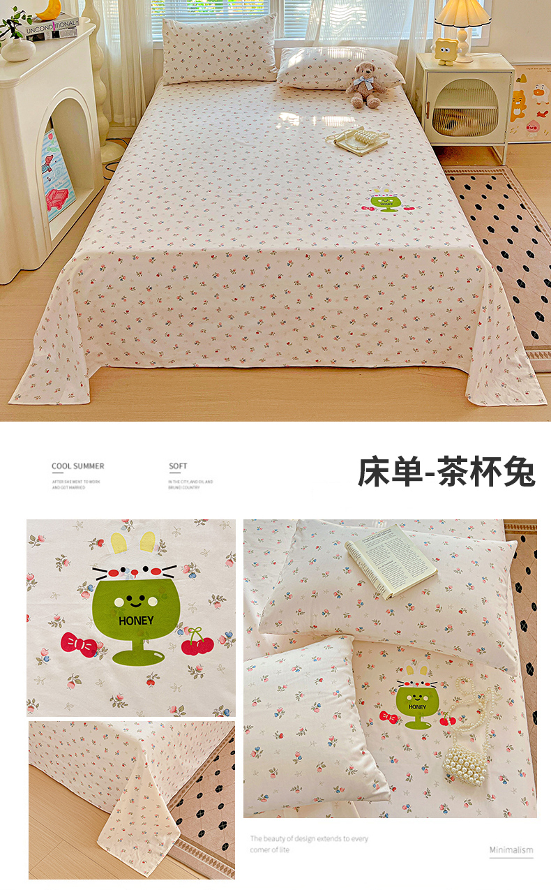 (总)有间小屋 2025新款全棉纯棉水洗棉单品系列床单单件-单床单,床单-草莓小熊,床单-茶杯兔,床单-点点腊肠狗,床单-蓝心小猫,床单-熊宝宝,床单-樱桃小猫
