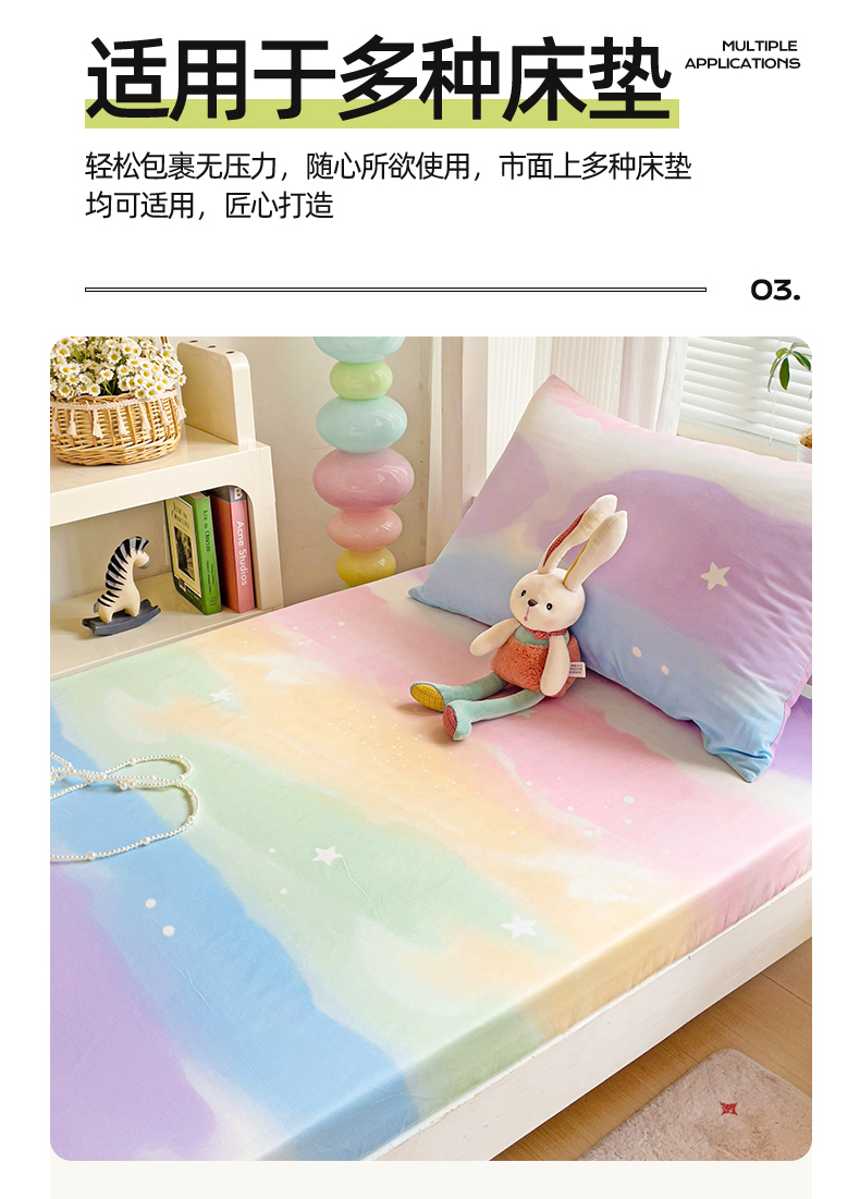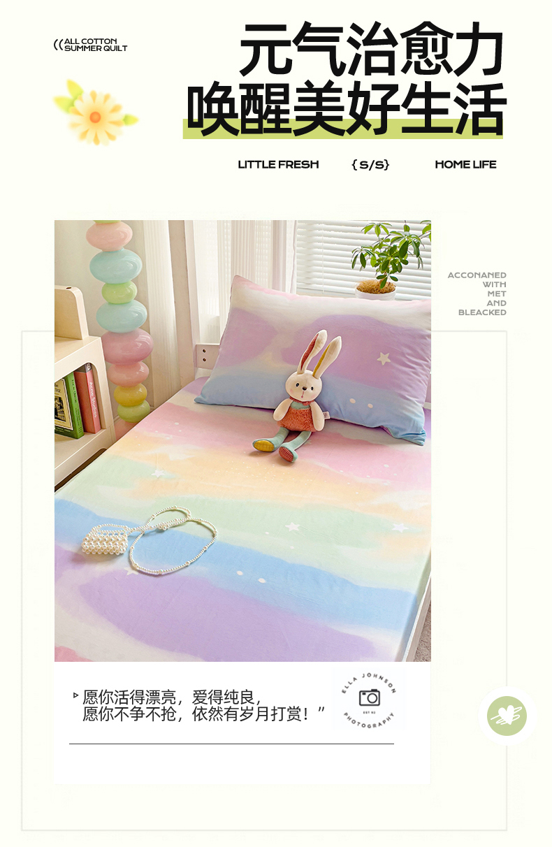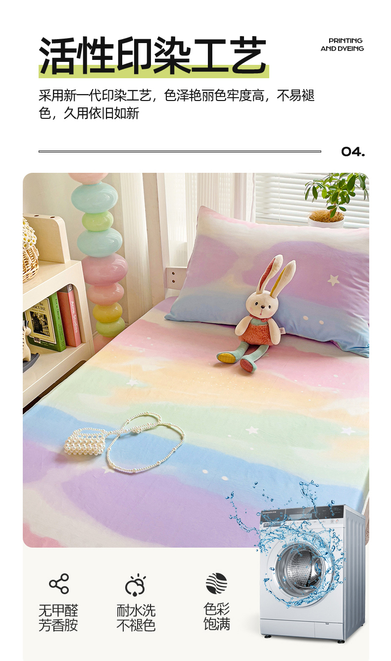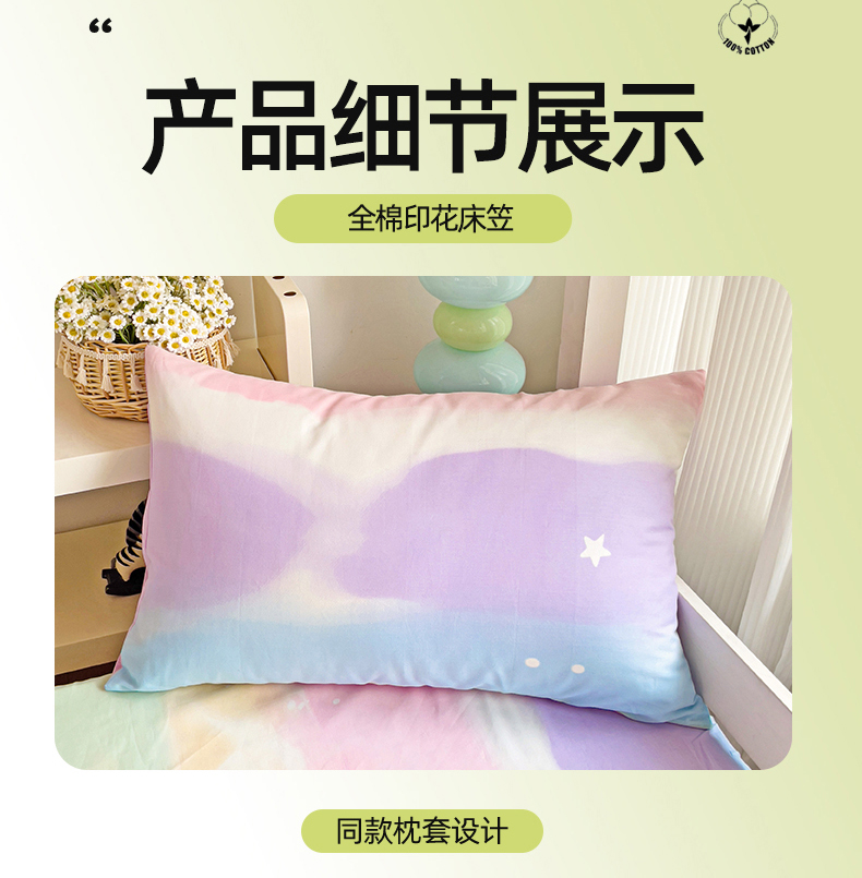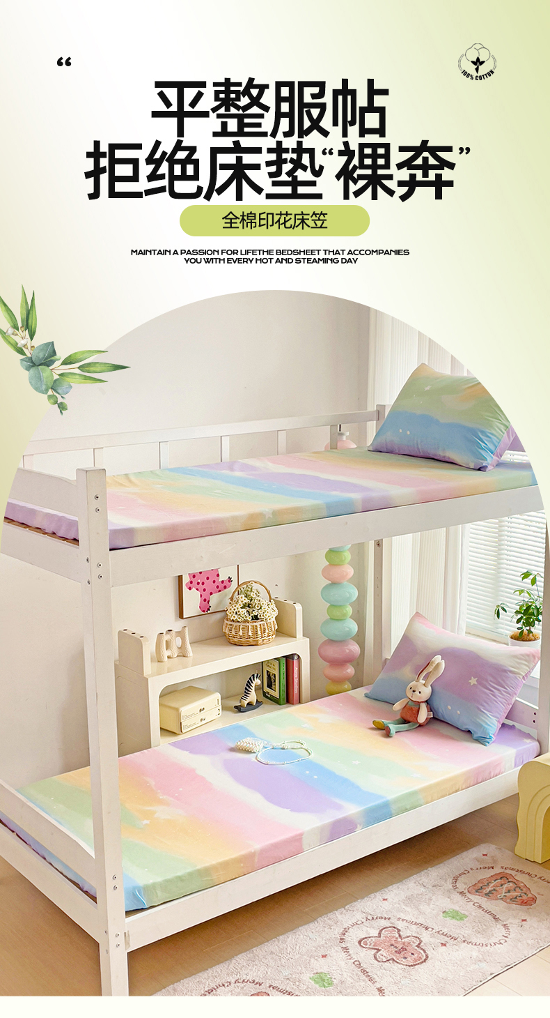 • 91家纺网 家纺一手货源 找家纺 名兮家居 2025新款全棉纯棉13372学生印花上下铺床笠单床笠单品床笠单件床笠 彩色天空