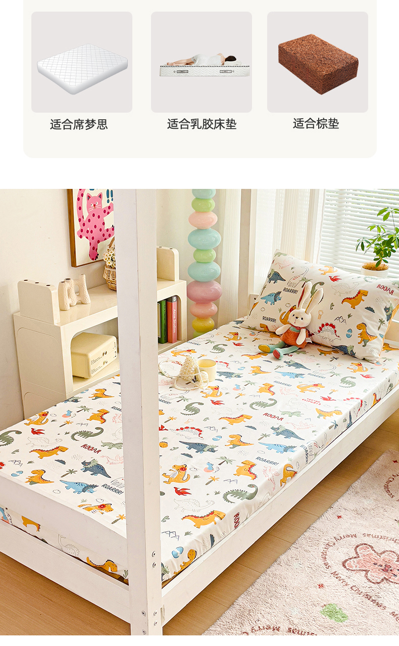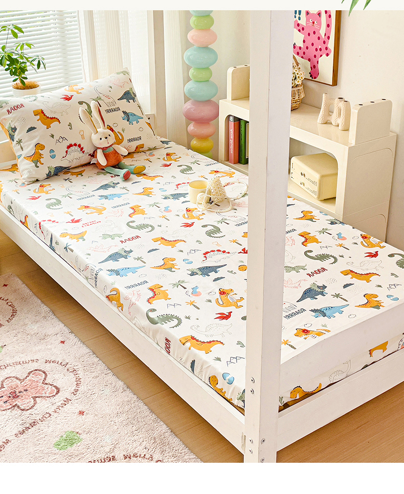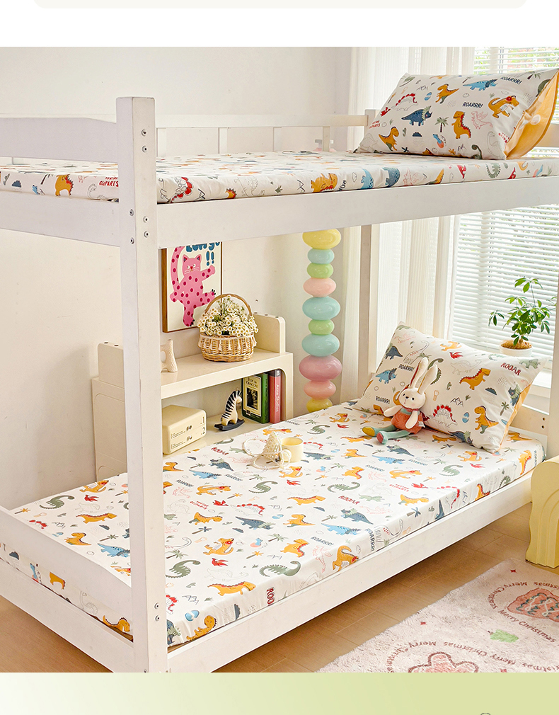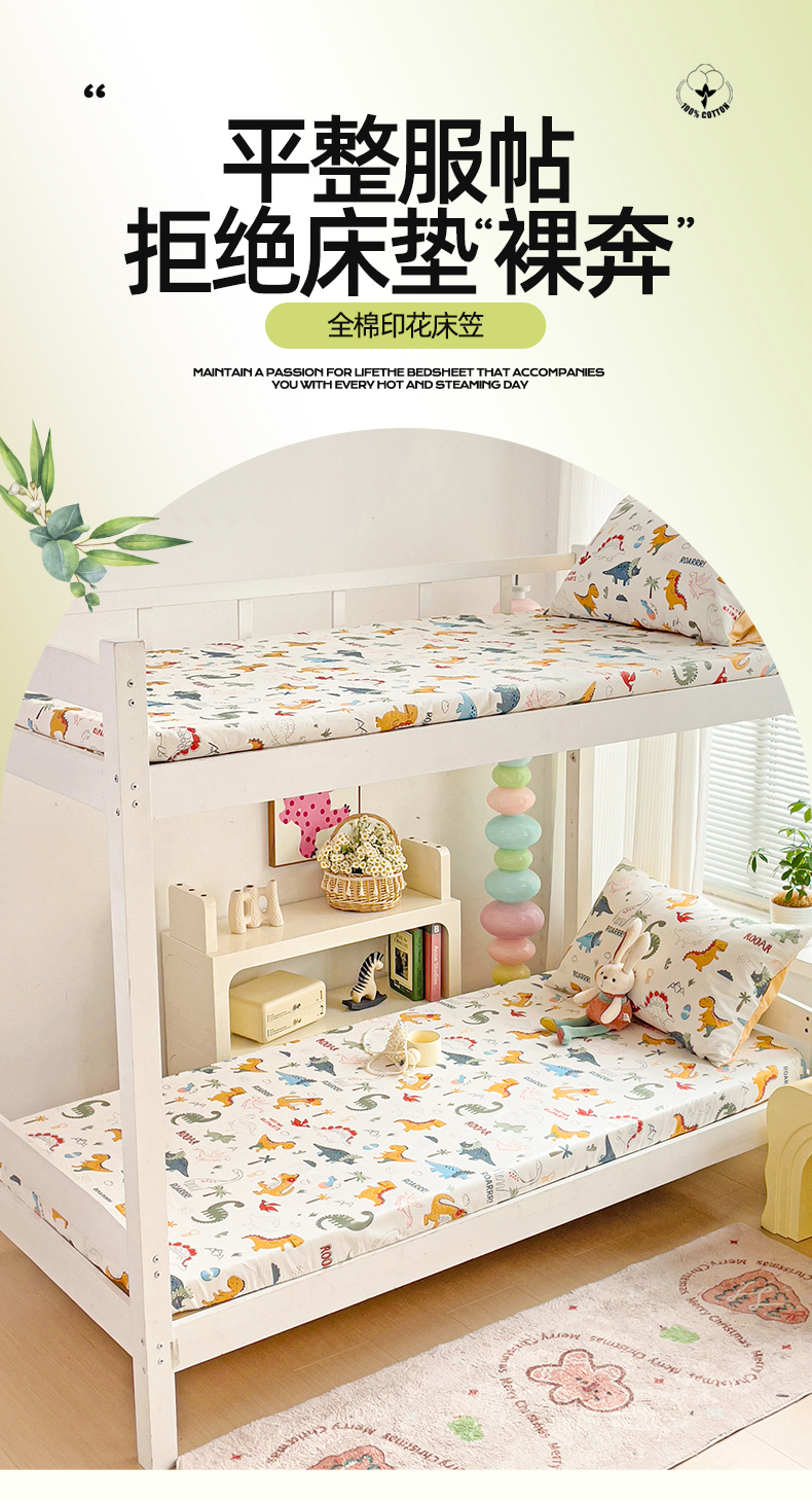 • 91家纺网 家纺一手货源 找家纺 名兮家居 2025新款全棉纯棉13372学生印花上下铺床笠单床笠单品床笠单件床笠 恐龙王国
