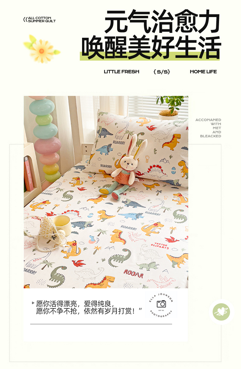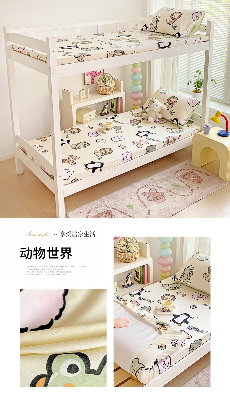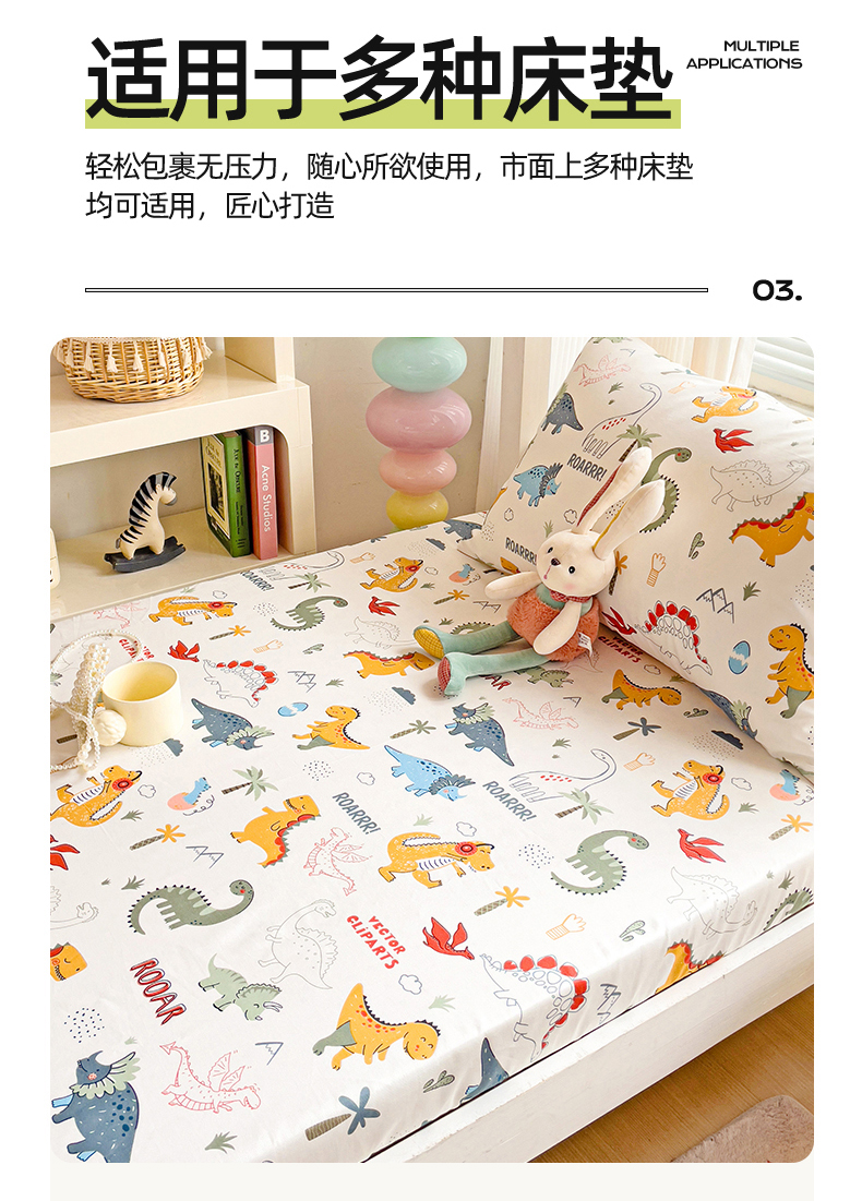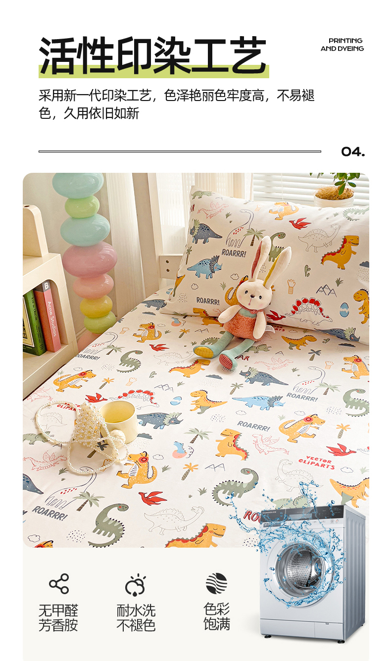 • 91家纺网 家纺一手货源 找家纺 名兮家居 2025新款全棉纯棉13372学生印花上下铺床笠单床笠单品床笠单件床笠 恐龙王国
