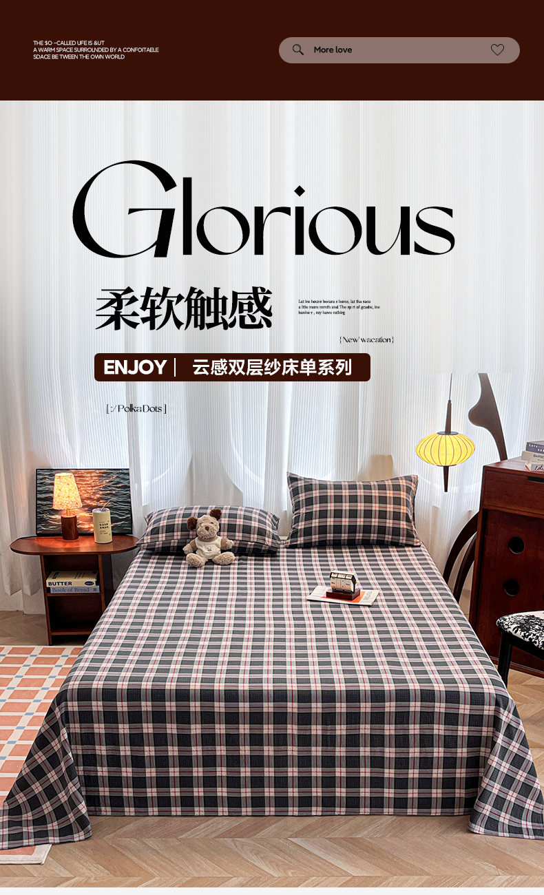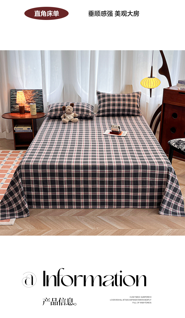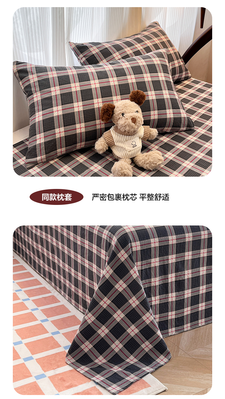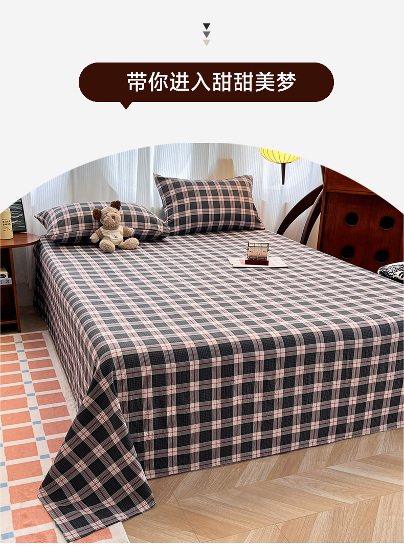• 91家纺网 家纺一手货源 找家纺 韩巢家纺 2025新款双层纱格子复古风床单人学生宿舍单床单 床单单件 幻夜