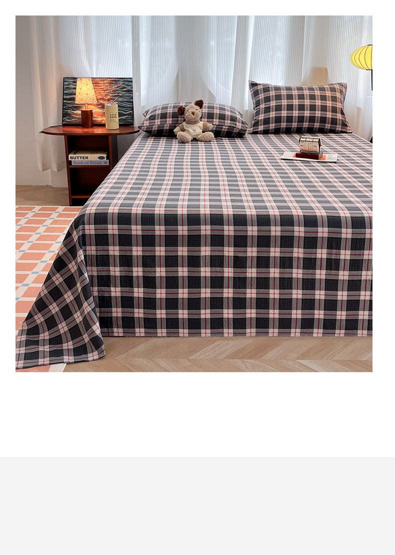 韩巢家纺 2025新款双层纱格子复古风床单人学生宿舍单床单 床单单件 幻夜