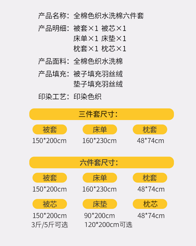 3斤被子/床单式六件套(1.2m床垫+枕芯)