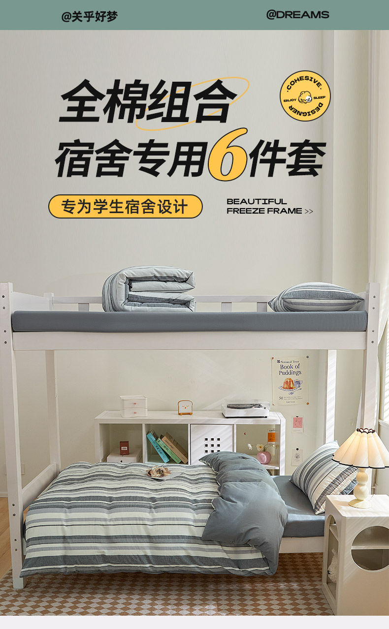 商品名称:吾诺2025新款 色织全棉学生组合大礼包三件套四件套 拉雯尔-灰
