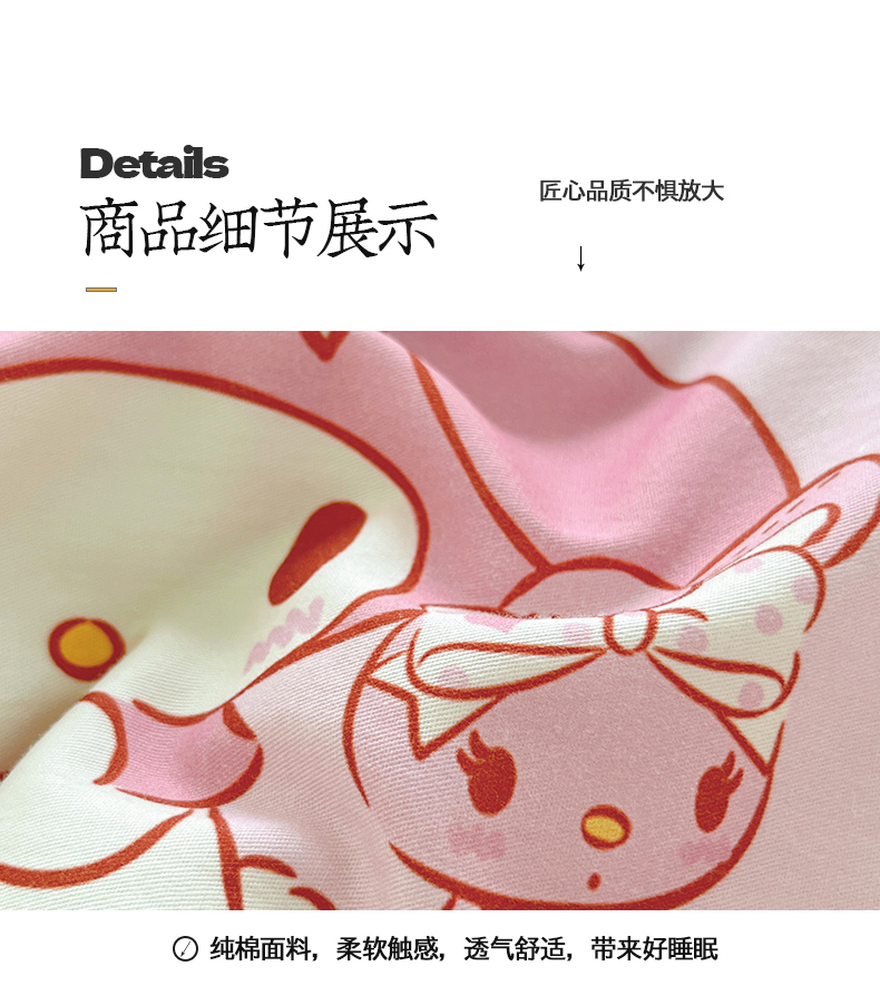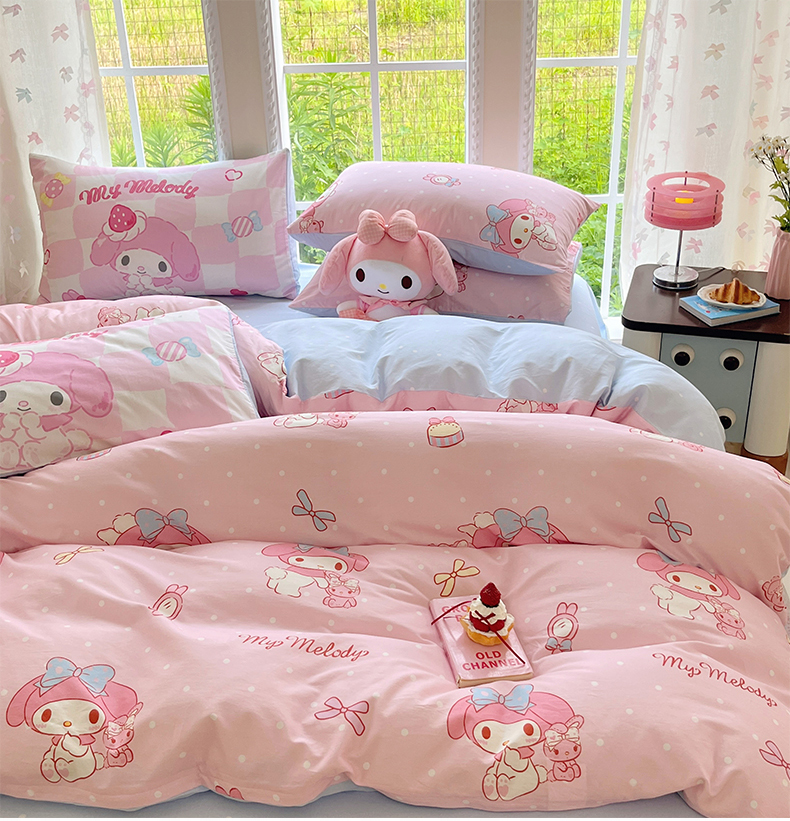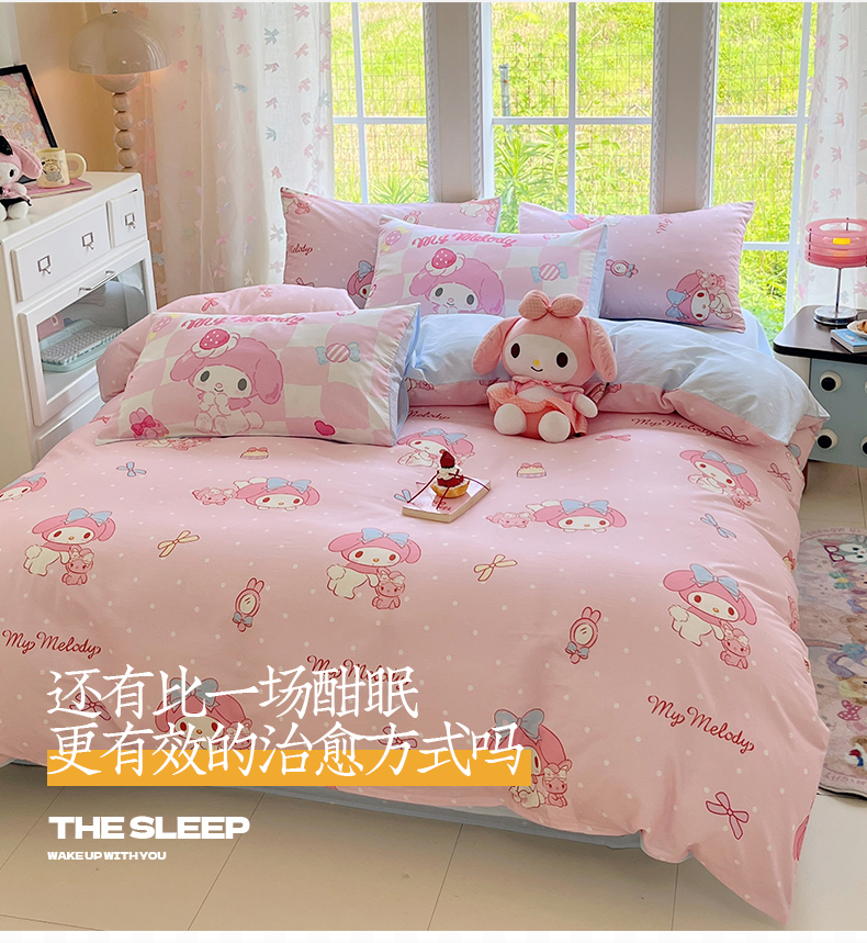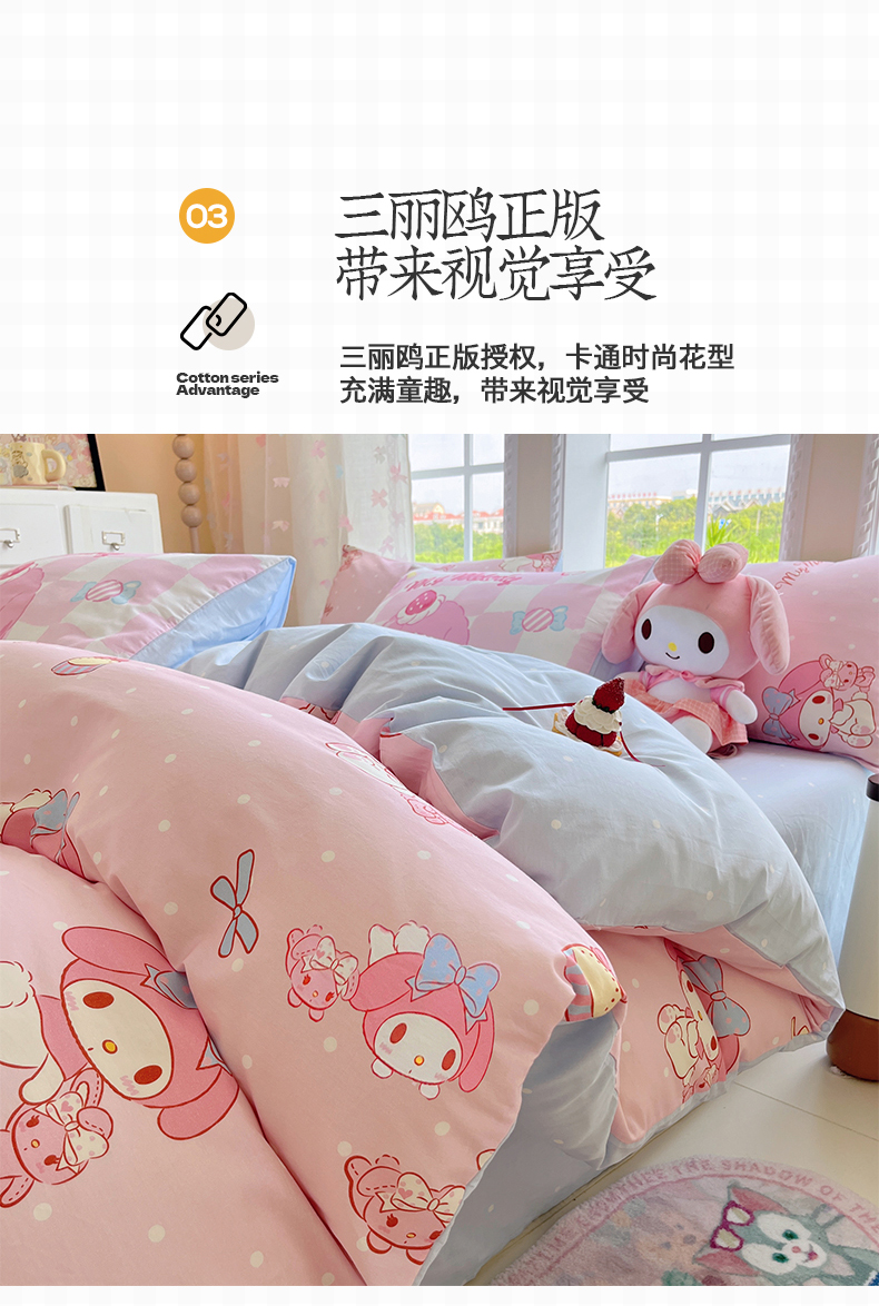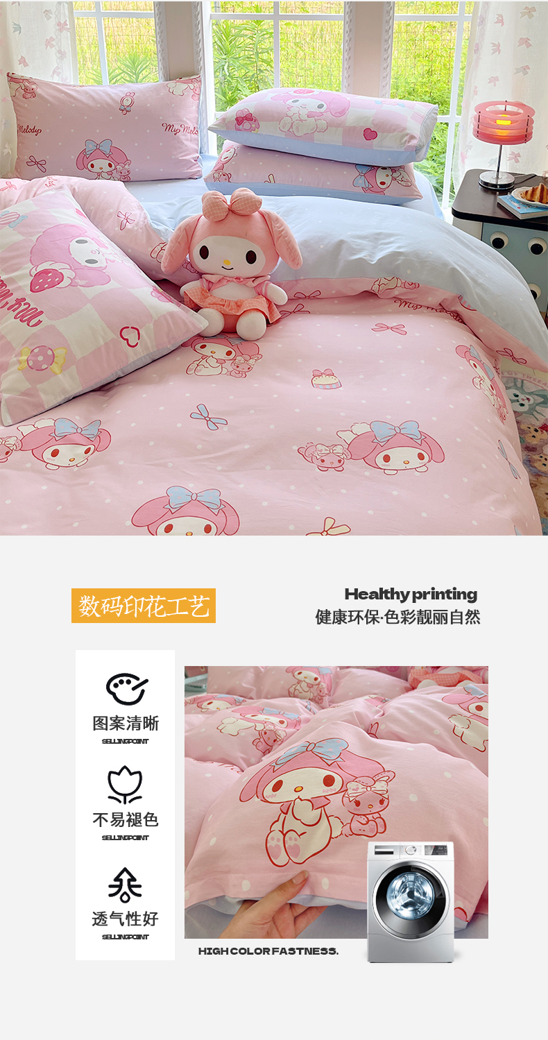 当前位置: 91家纺网 > 商品网购 > 床品套件 > 四件套 > 全棉普通四件套 > 金爱家2025新款三丽鸥正版授权卡通数码印花混搭纯棉印花系列四件套 棉三丽鸥-混搭魔法美乐蒂