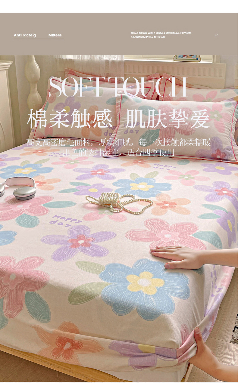 • 91家纺网 家纺一手货源 找家纺 纽缦家纺 2025新款全棉纯棉磨毛印花单床笠 床笠单件 曼迪蓝