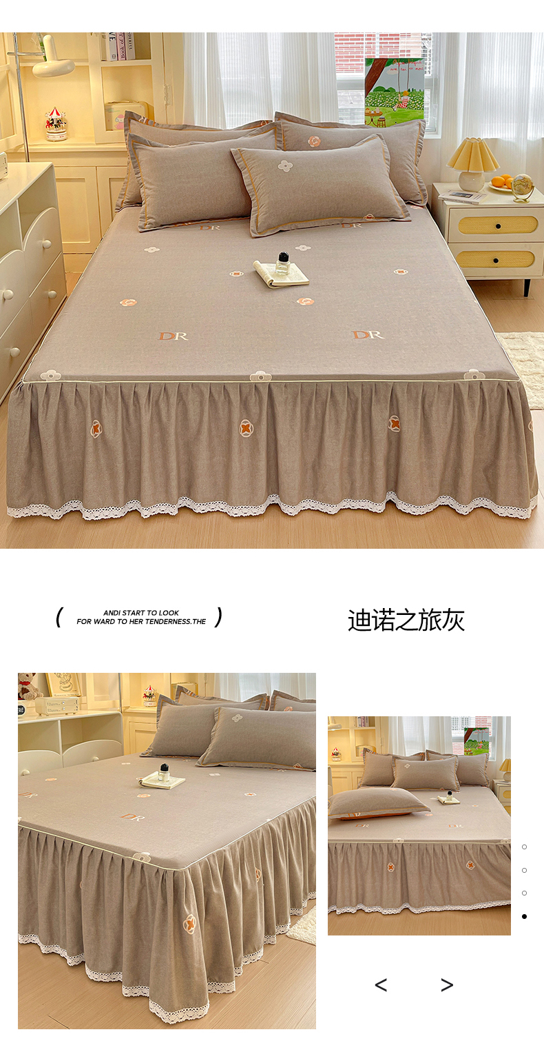 • 91家纺网 家纺一手货源 找家纺 纽缦家纺 2025新款全棉纯棉磨毛印花单品床裙 床裙单件 复古花意灰