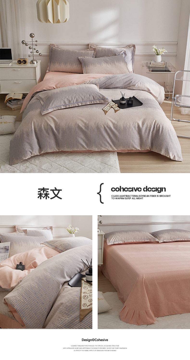 当前位置: 91家纺网 > 商品网购 > 床品套件 > 四件套 > 全棉普通四件套 > 沐白家居 2025新款全棉生态磨毛四件套森文