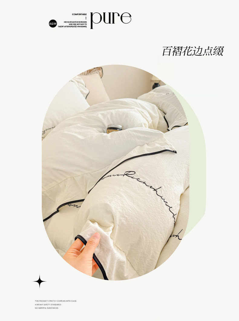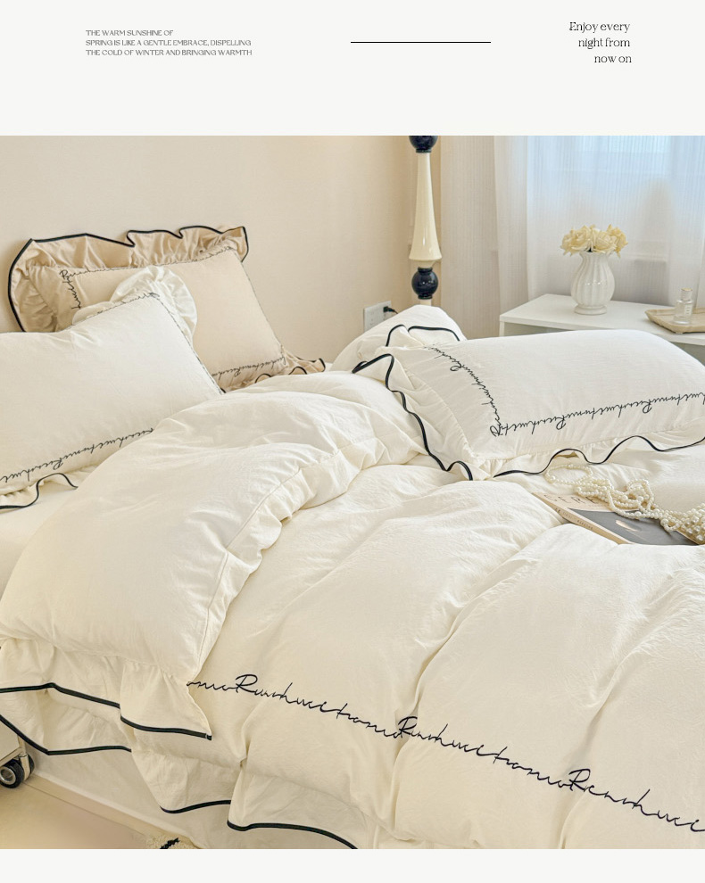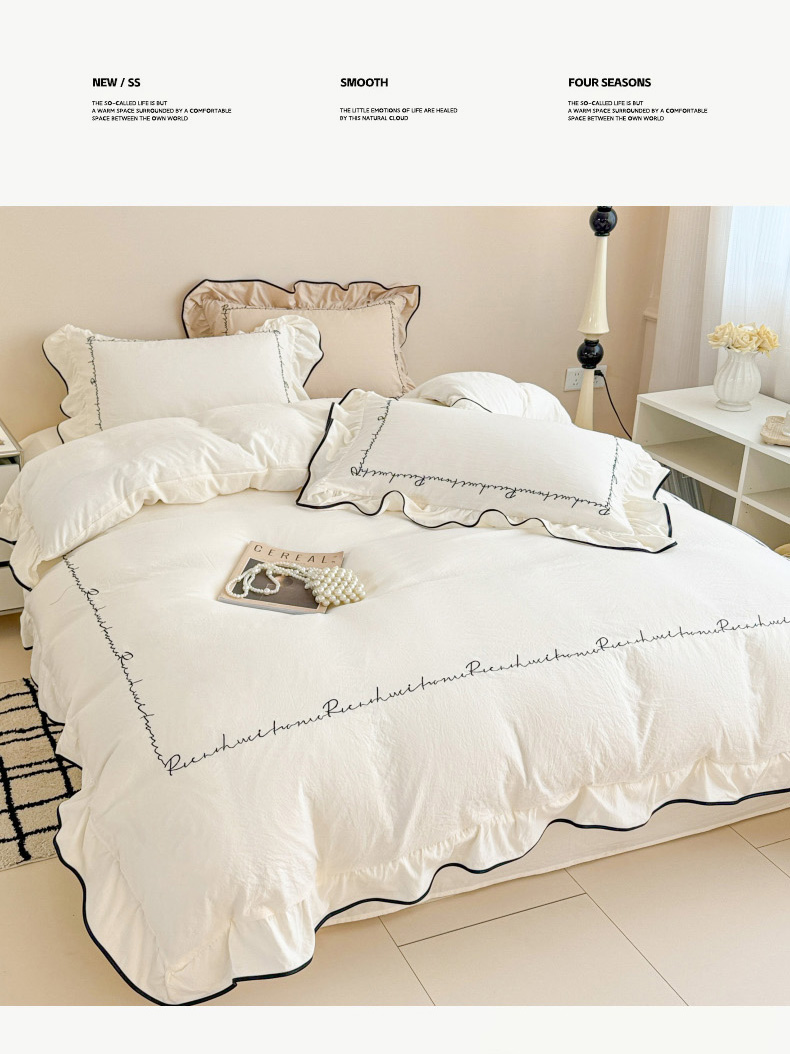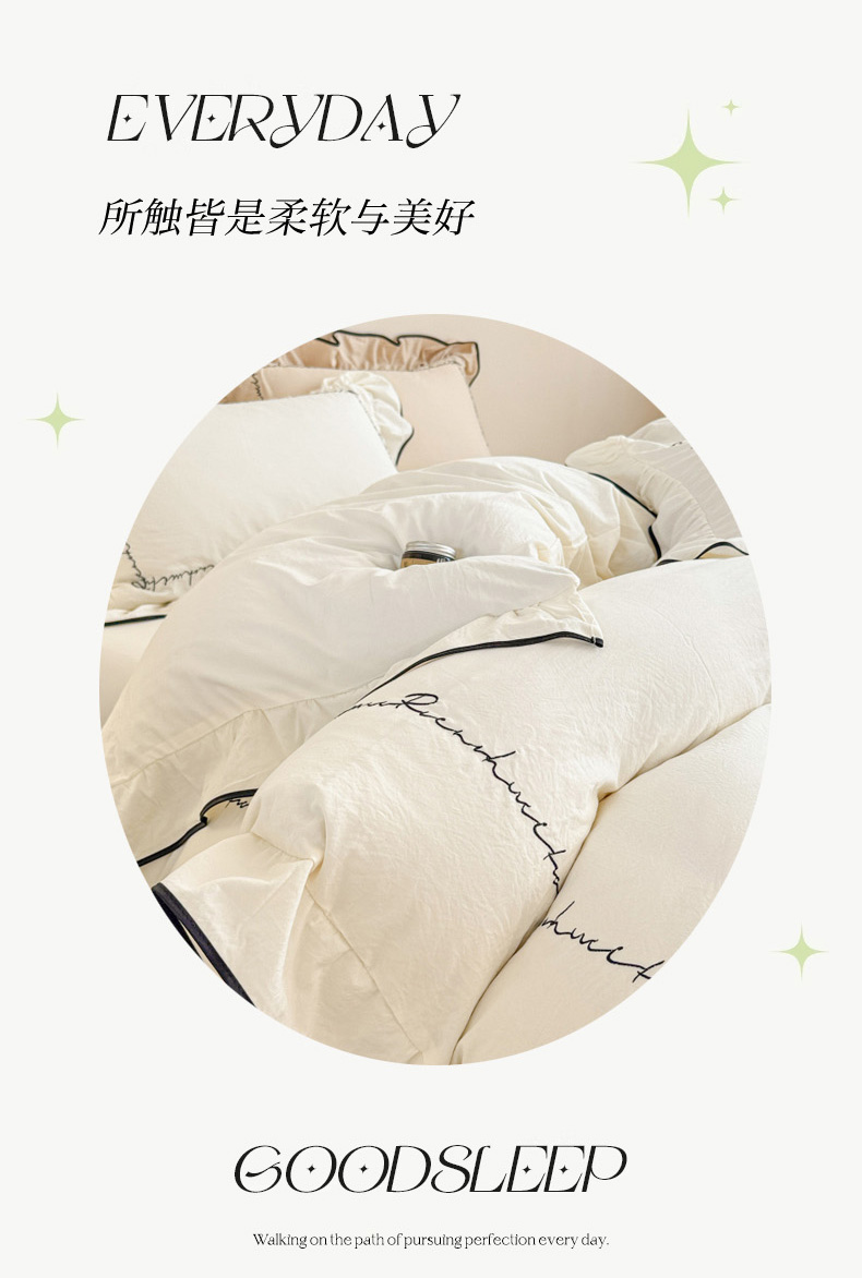 当前位置: 91家纺网 > 商品网购 > 床品套件 > 四件套 > 其它四件套 > 米可 2025新款云朵棉刺绣花边款四件套 简约字母-白