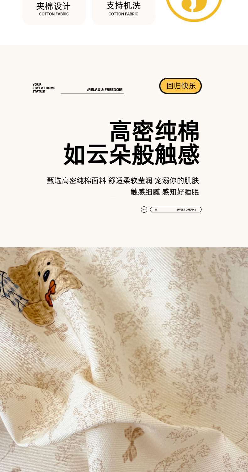 商品名称:简宜家居(朝初家纺) 2025新款全棉纯棉夹棉床盖学生宿舍上下铺三件套 碎花小熊-夹棉款