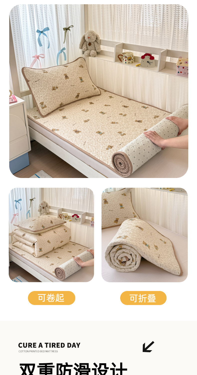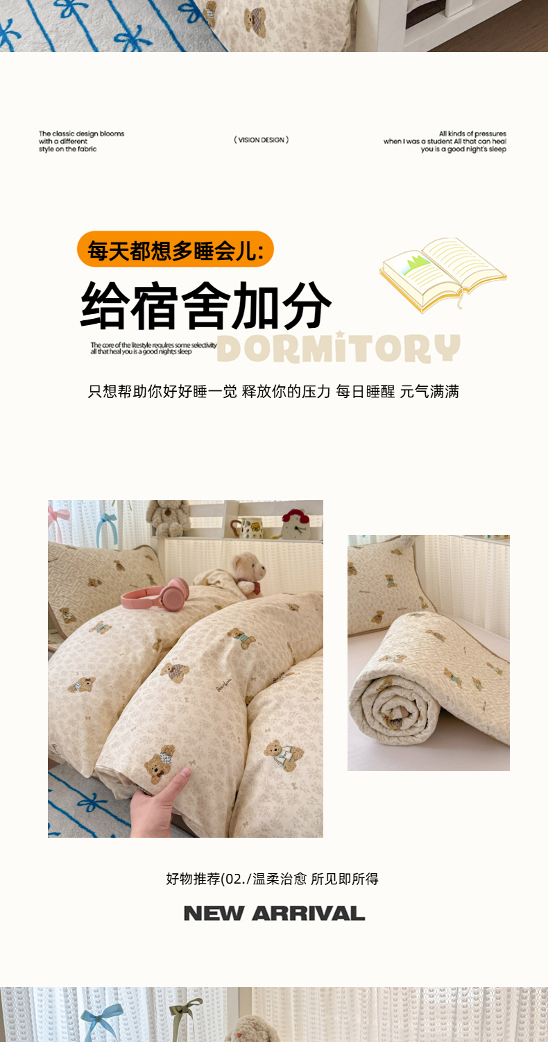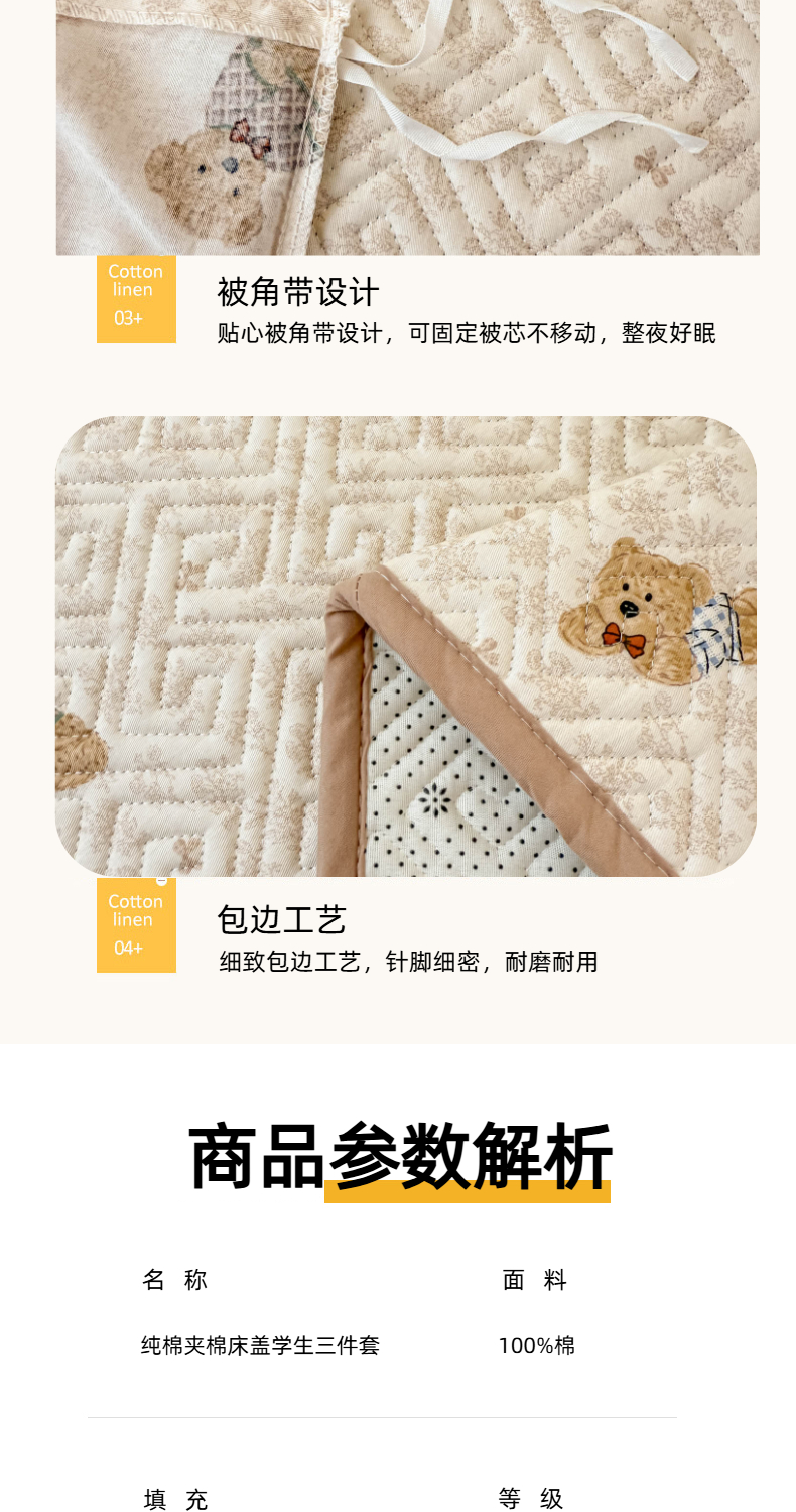 简宜家居(朝初家纺) 2025新款全棉纯棉夹棉床盖学生宿舍上下铺三件套 碎花小熊-夹棉款