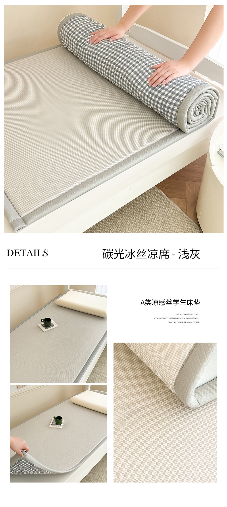 商品名称:卡罗兰 2025新款碳光冰丝按摩学生床垫床褥 双面 四季通用 浅粉