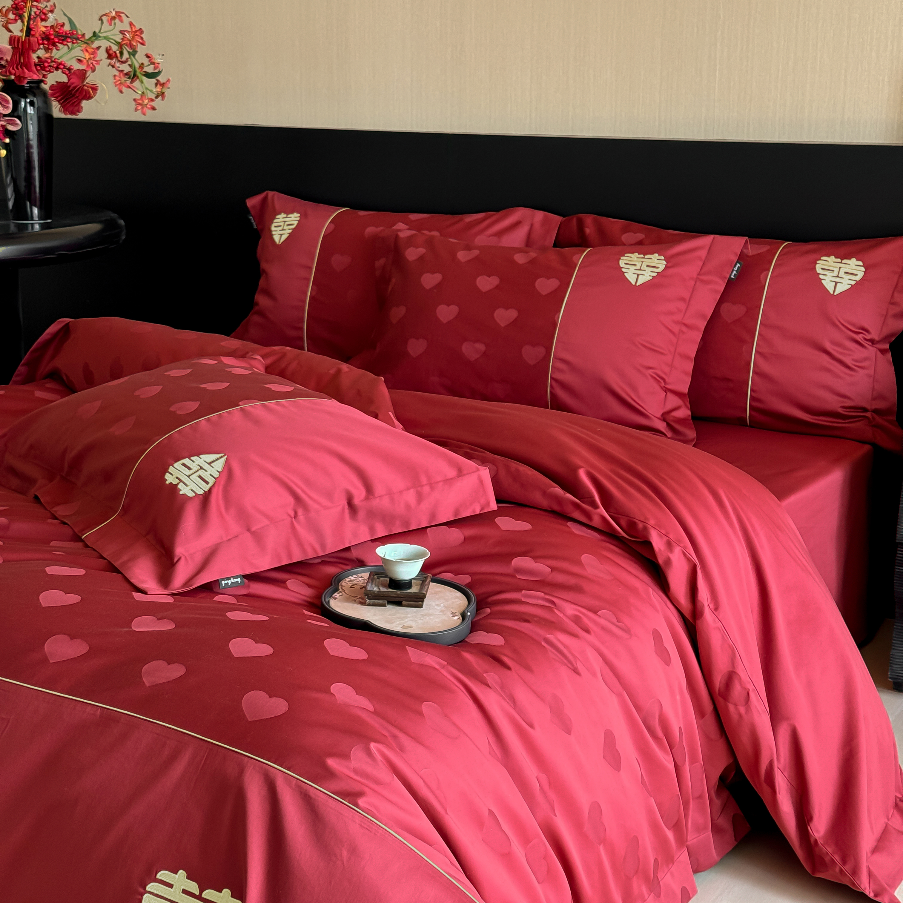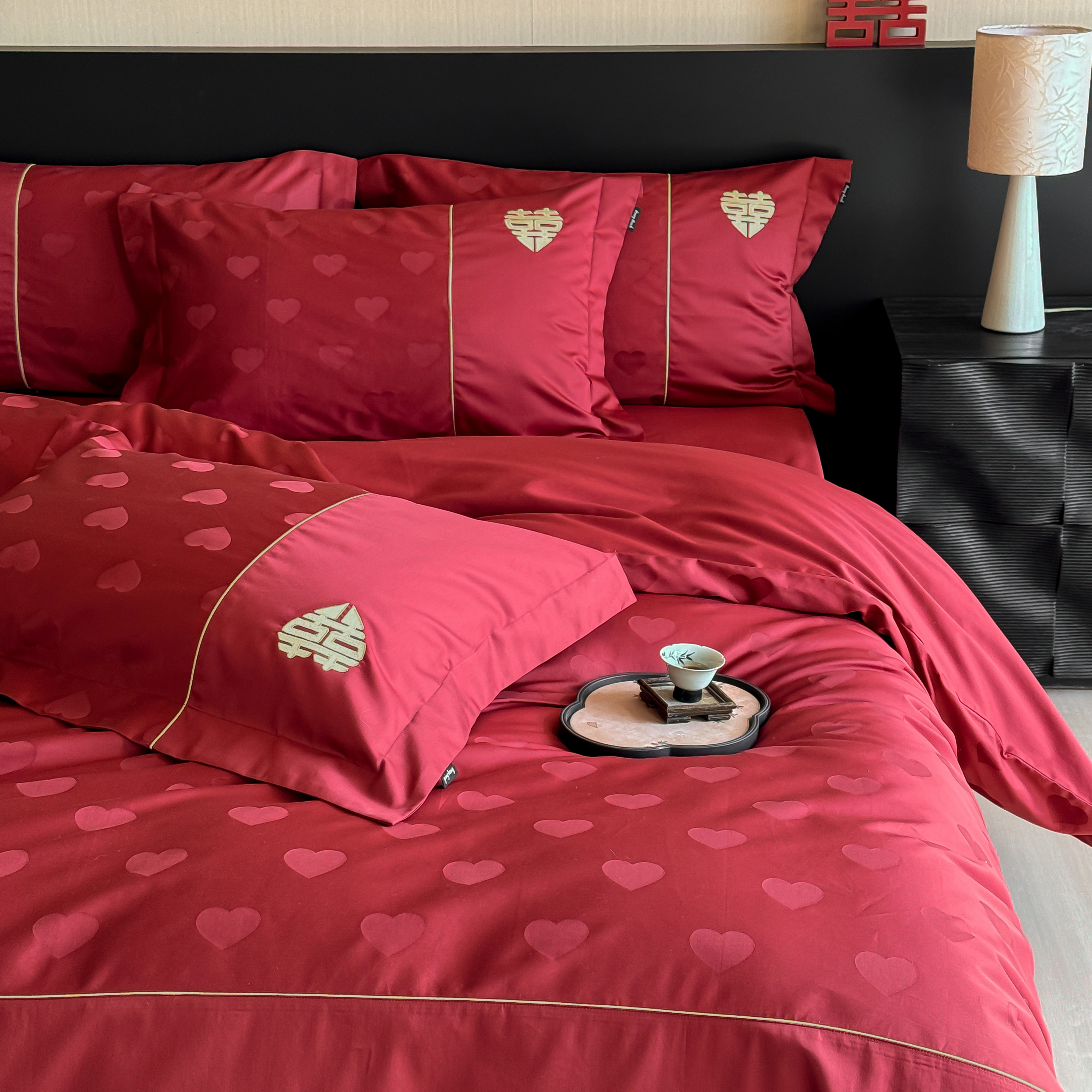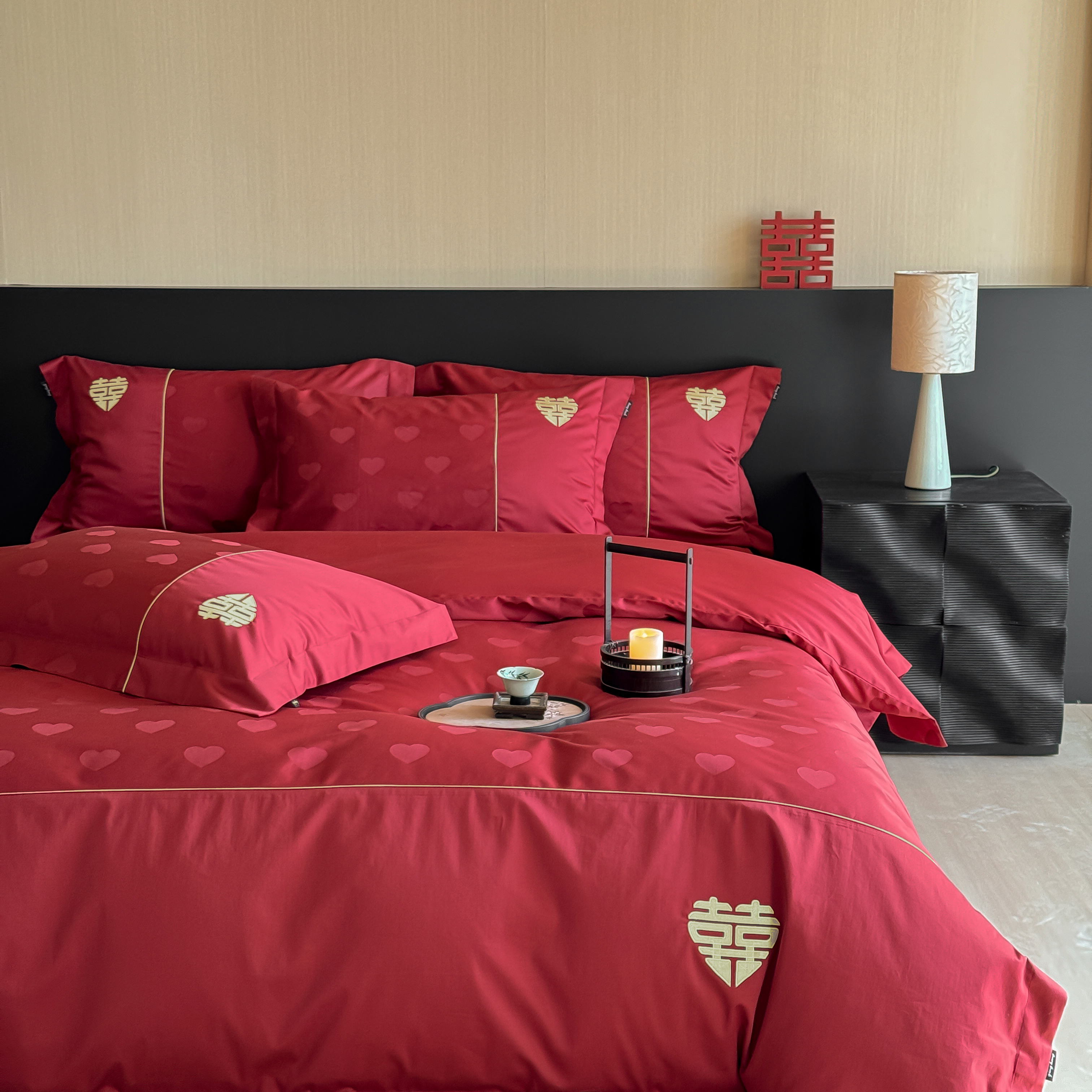 (总)佳汐蓝家纺 2026新款新疆长绒棉全棉纯棉轻奢五线刺绣四件套,初雪白,稻谷米,冷釉灰,汐雾蓝,薰衣紫,釉粉,朱砂红