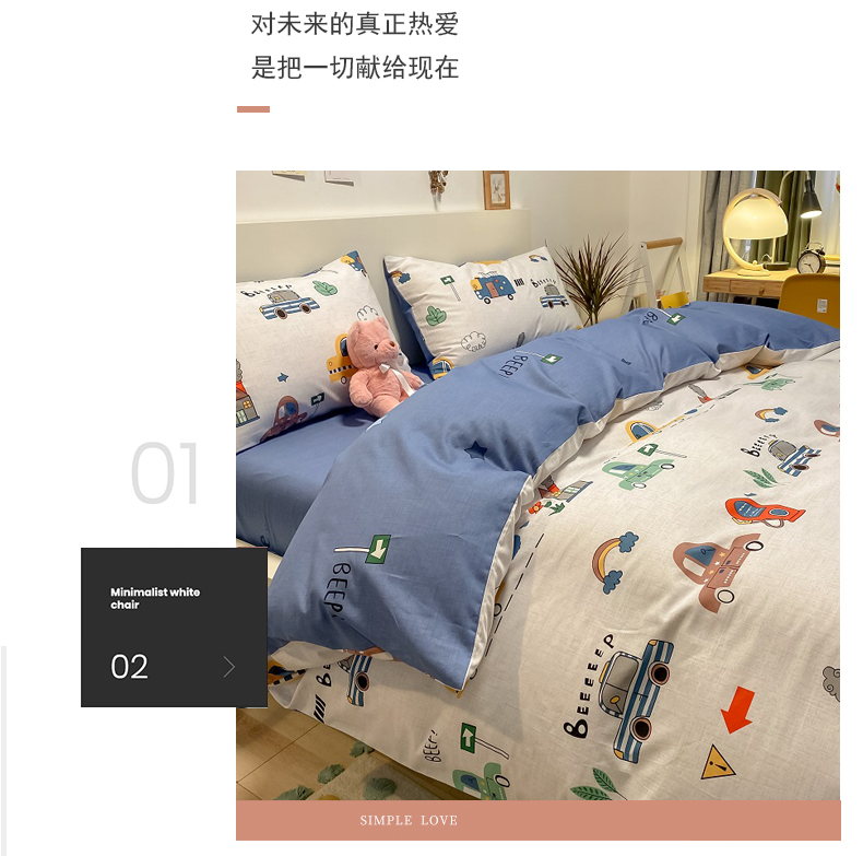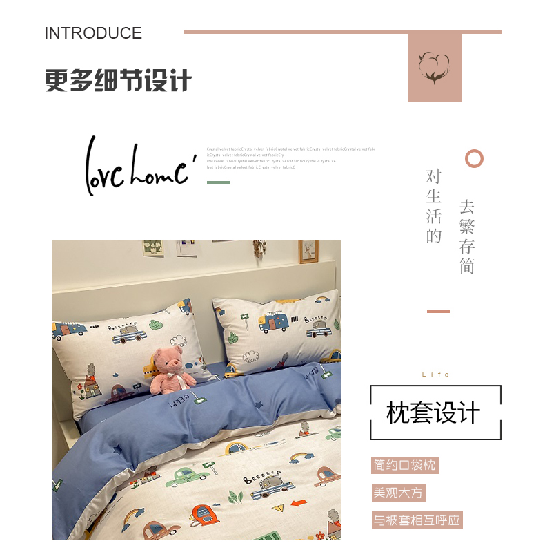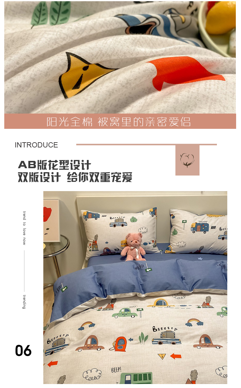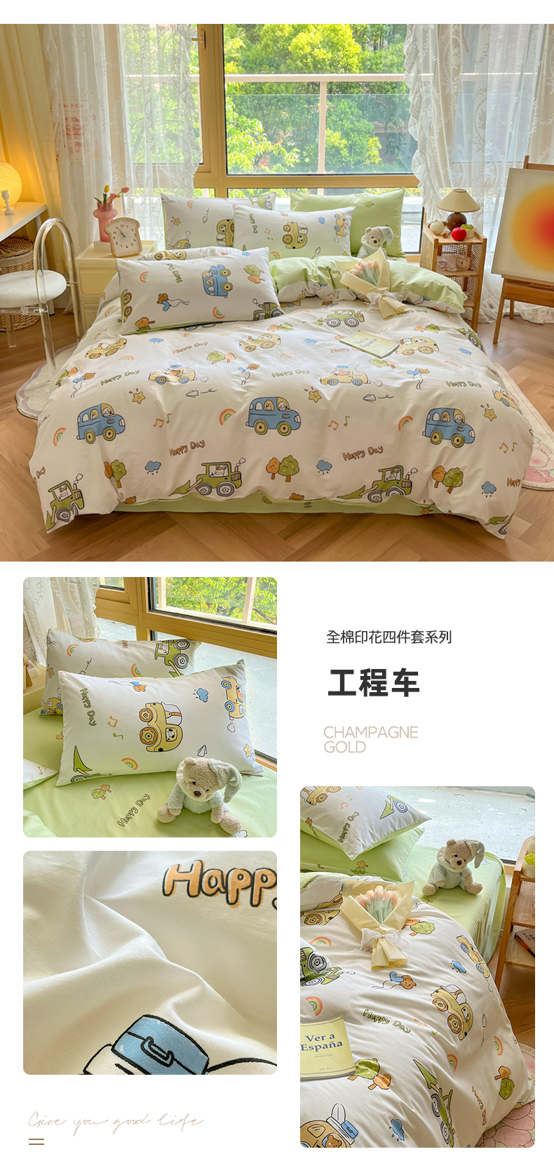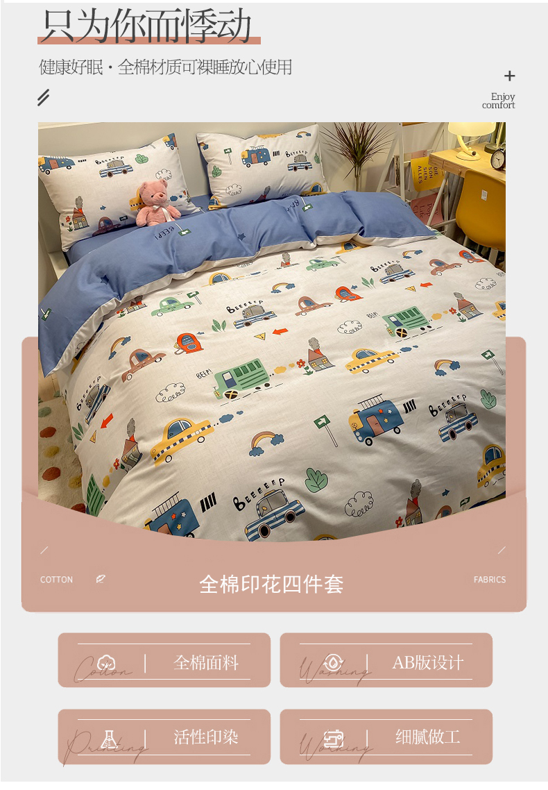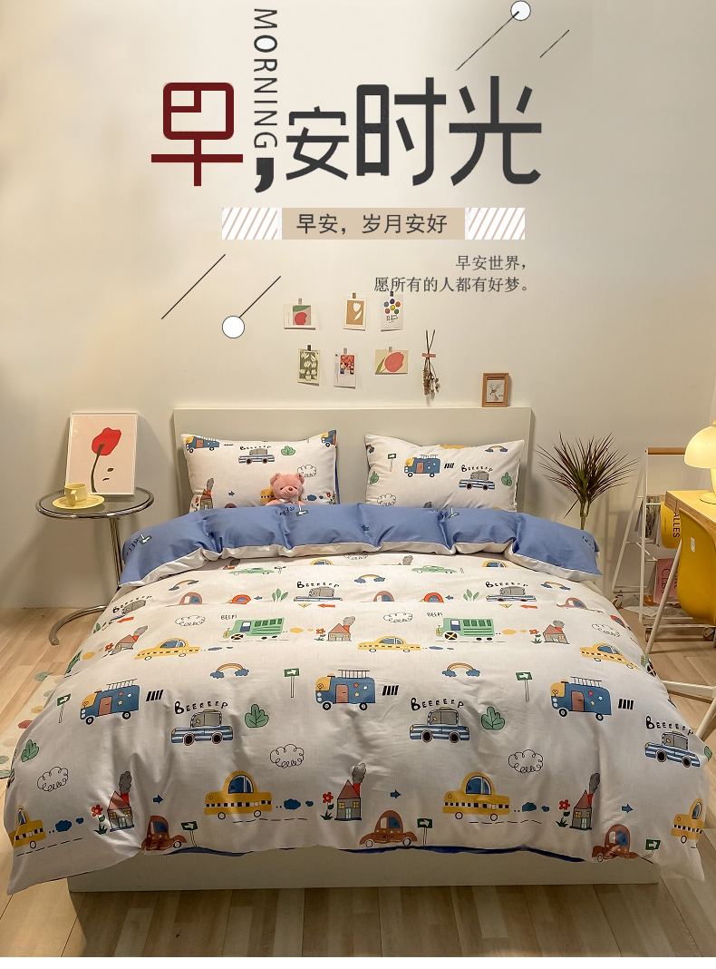 当前位置: 91家纺网 > 商品网购 > 床品套件 > 四件套 > 全棉普通四件套 > 吉象家纺 2025新款亲肤舒适全棉纯棉小清新卡通系列四件套 汽车嘟嘟