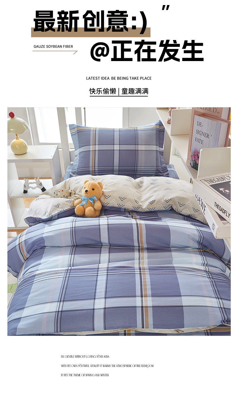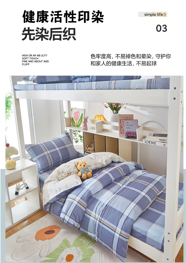 安逸家纺 2024新款全棉学生三件套纯棉学生宿舍三件套 风华正茂