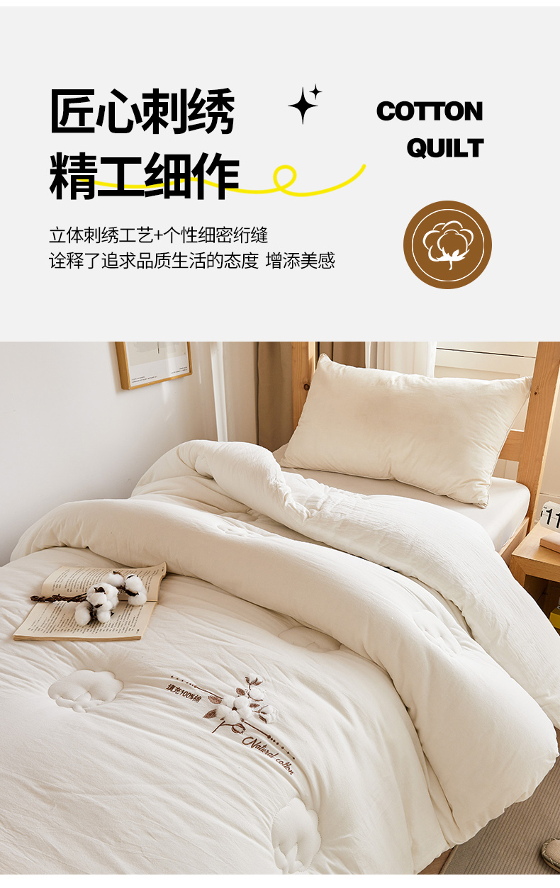 当前位置: 91家纺网 > 商品网购 > 被子 > 棉被 > (总)西域种棉人·千百笠 2025新款A类学生款填充100%棉新疆棉花被子毛巾绣贴布绣冬被棉被全棉冬季加厚保暖纯棉花被芯 91家纺网 家纺一手货源 找家纺 (总)2025新款A类学生款填充100%棉