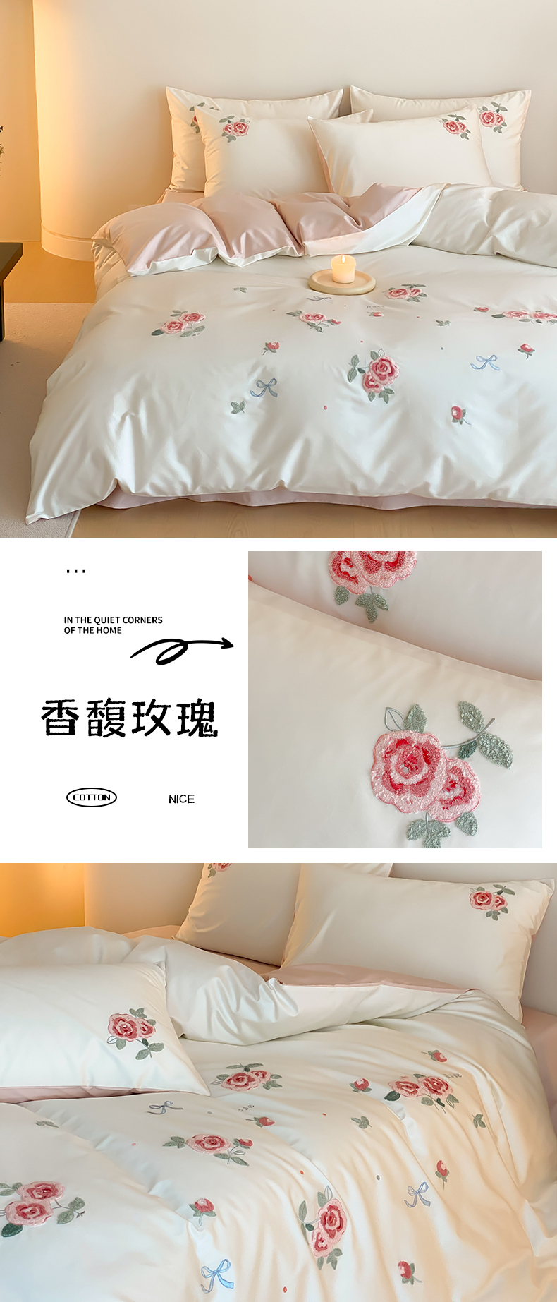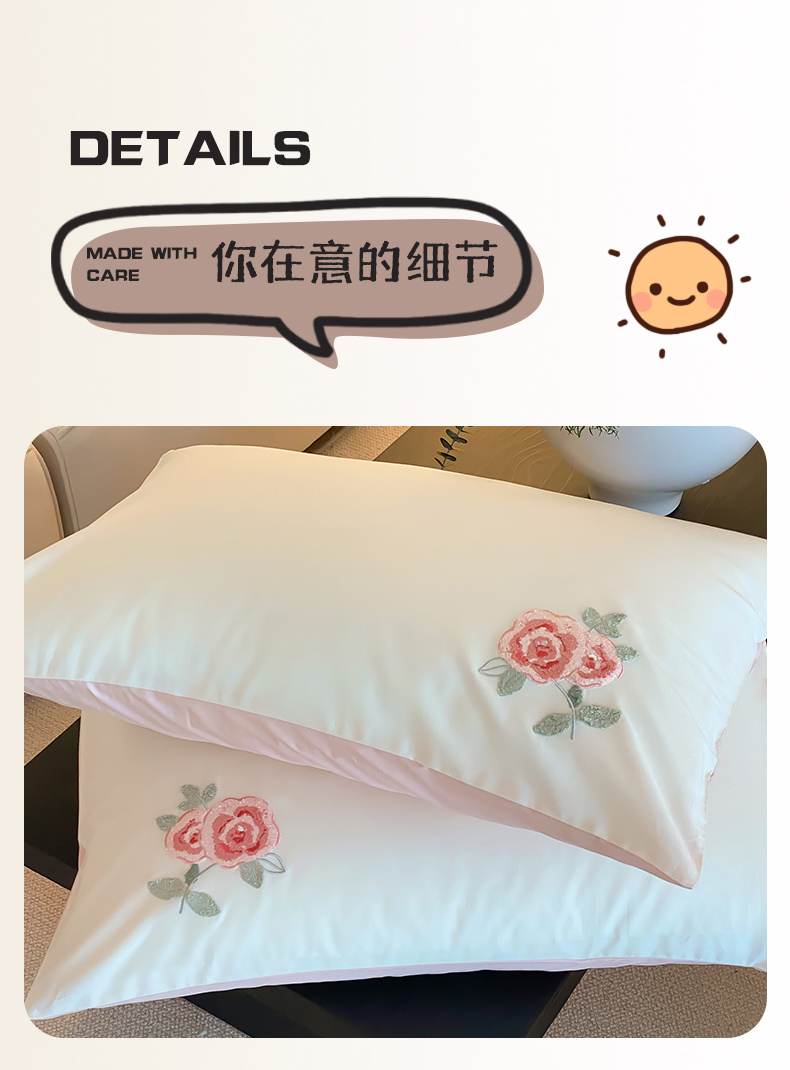 商品名称:云栖2025全棉刺绣纯色纯棉长绒棉四件套-乐萌系列 香馥玫瑰