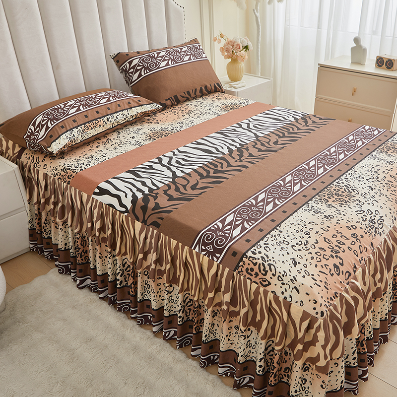 艾裙海2025新款印花床裙三件套 -可跨境 斑马豹纹