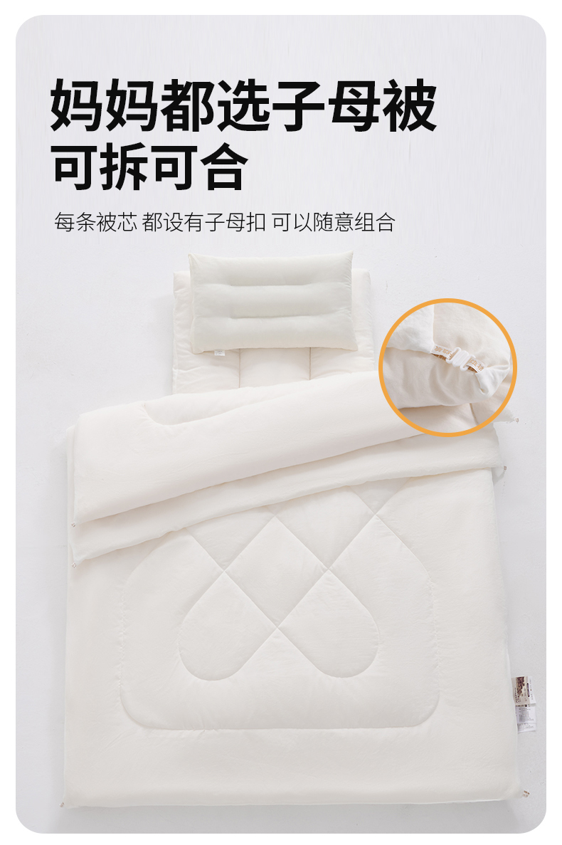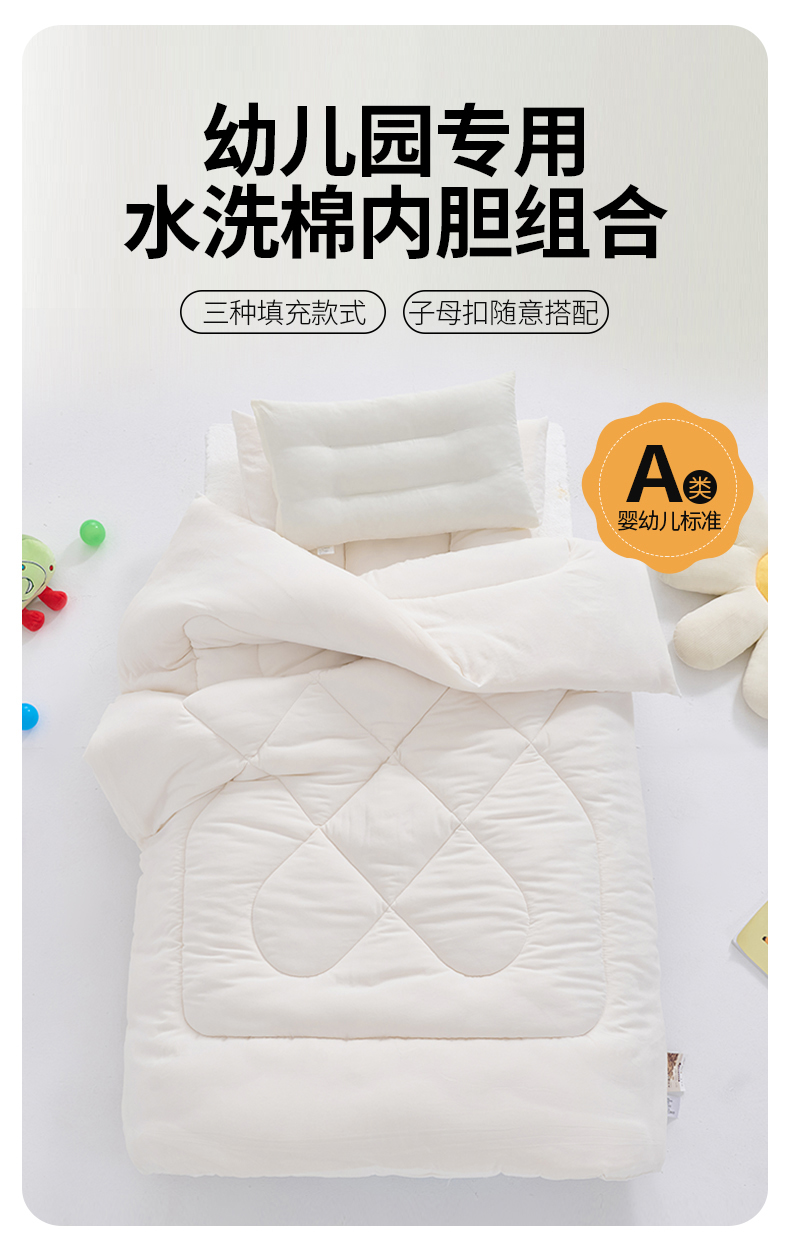 当前位置: 91家纺网 > 商品网购 > 婴童用品 > 婴童三件套 > (总)嗨皮宝贝 2025新款儿童幼儿园套件内胆水洗棉大豆被芯系列被子三件套垫芯垫被
