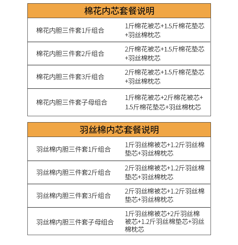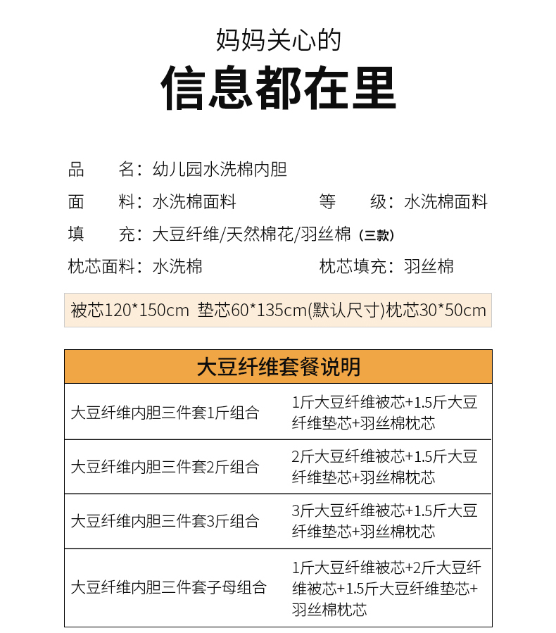 1斤水洗棉大豆内胆三件套(1斤被芯+垫芯+枕芯) | ¥50.00 |