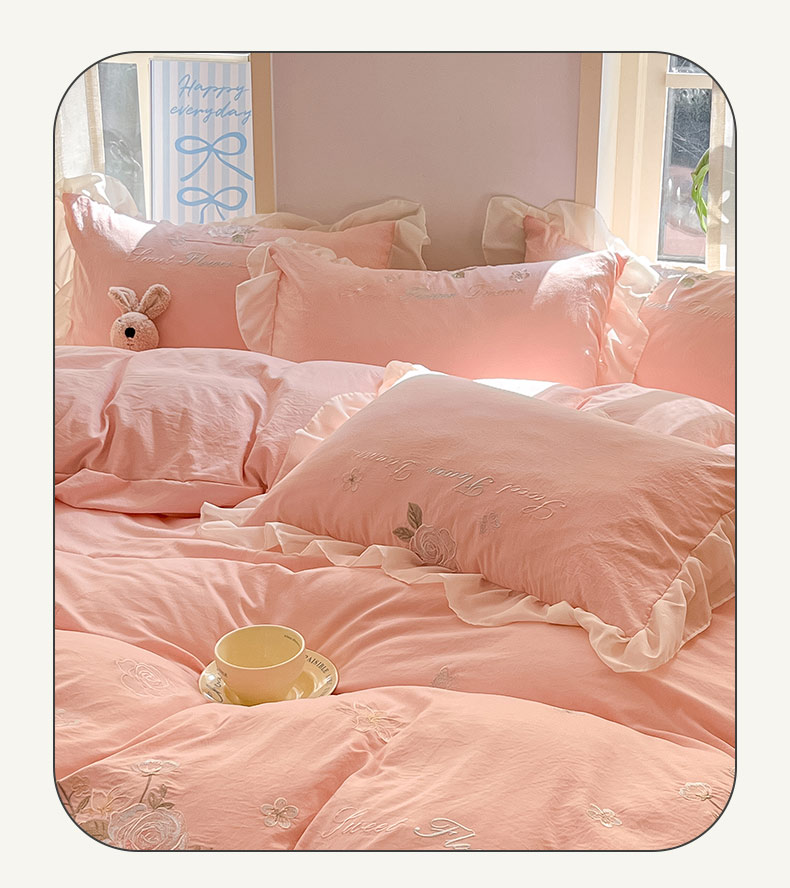 AB家纺2025新款 水洗棉绣花四件套 依兰梦 微微粉