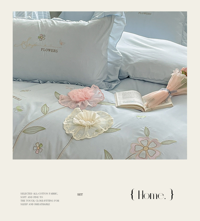 AB家纺2025新款 水洗棉绣花四件套 丽芙塔-天空蓝
