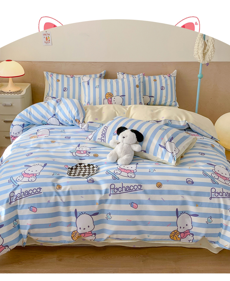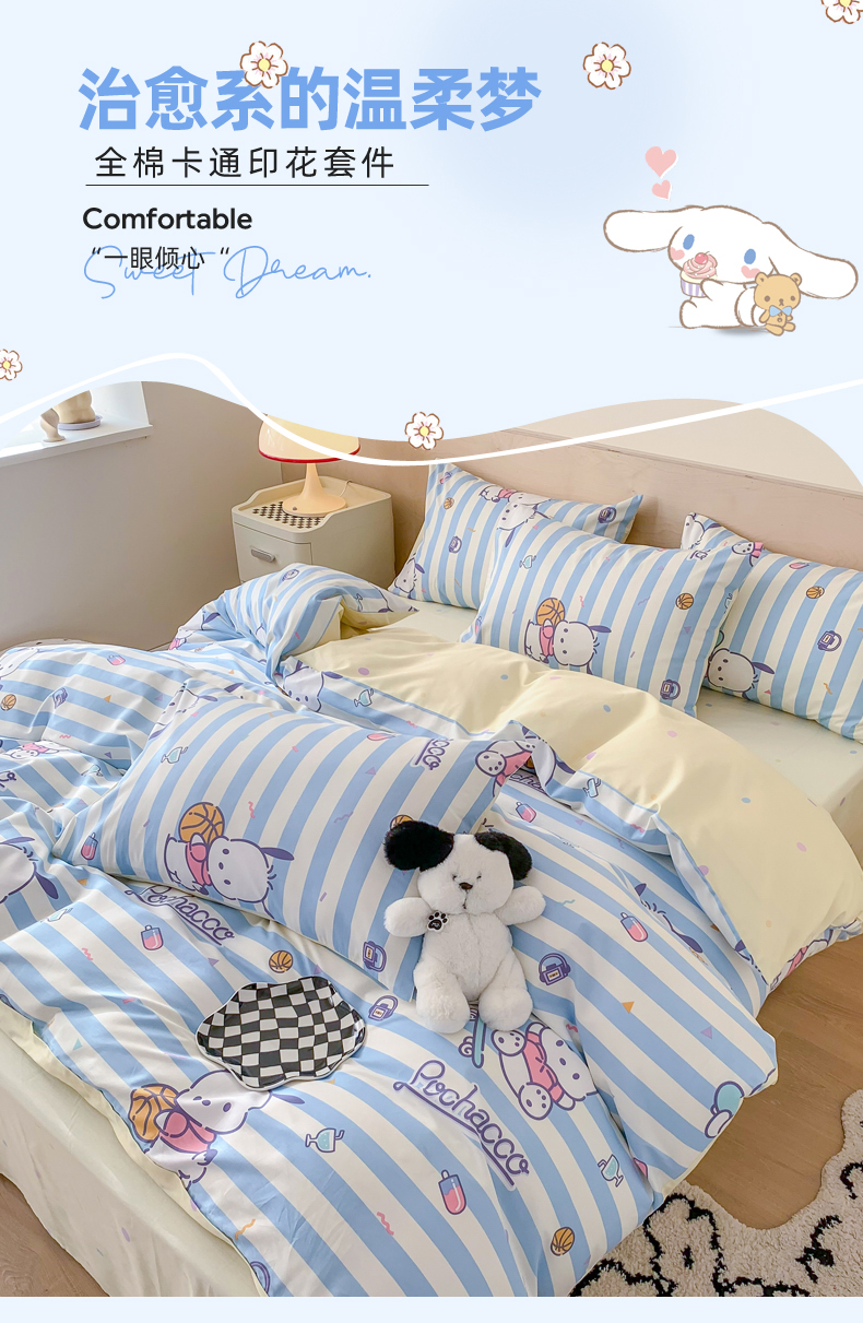 当前位置: 91家纺网 > 商品网购 > 床品套件 > 四件套 > 全棉普通四件套 > 玉元坊 2025新款三丽鸥系列 纯棉床单全棉床裙三四件套 基础款 条纹帕恰狗【简约款】