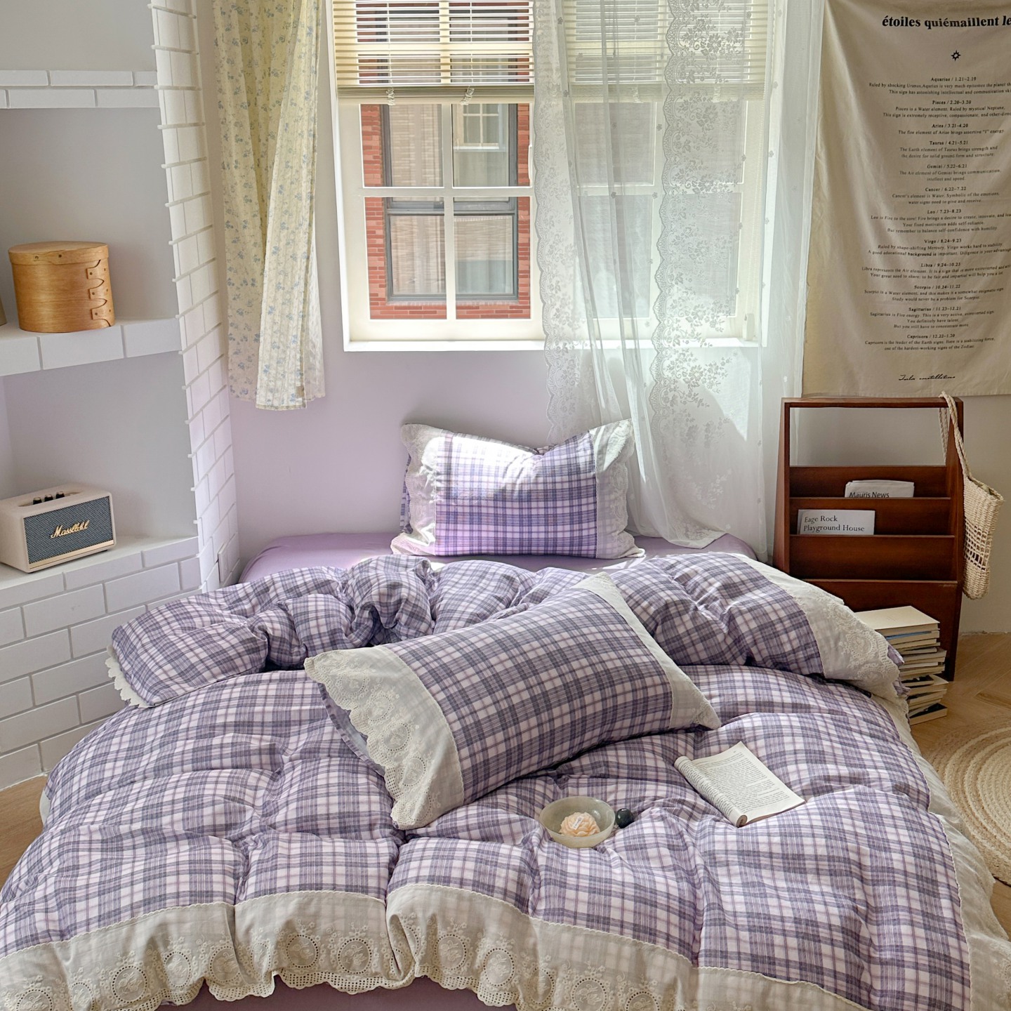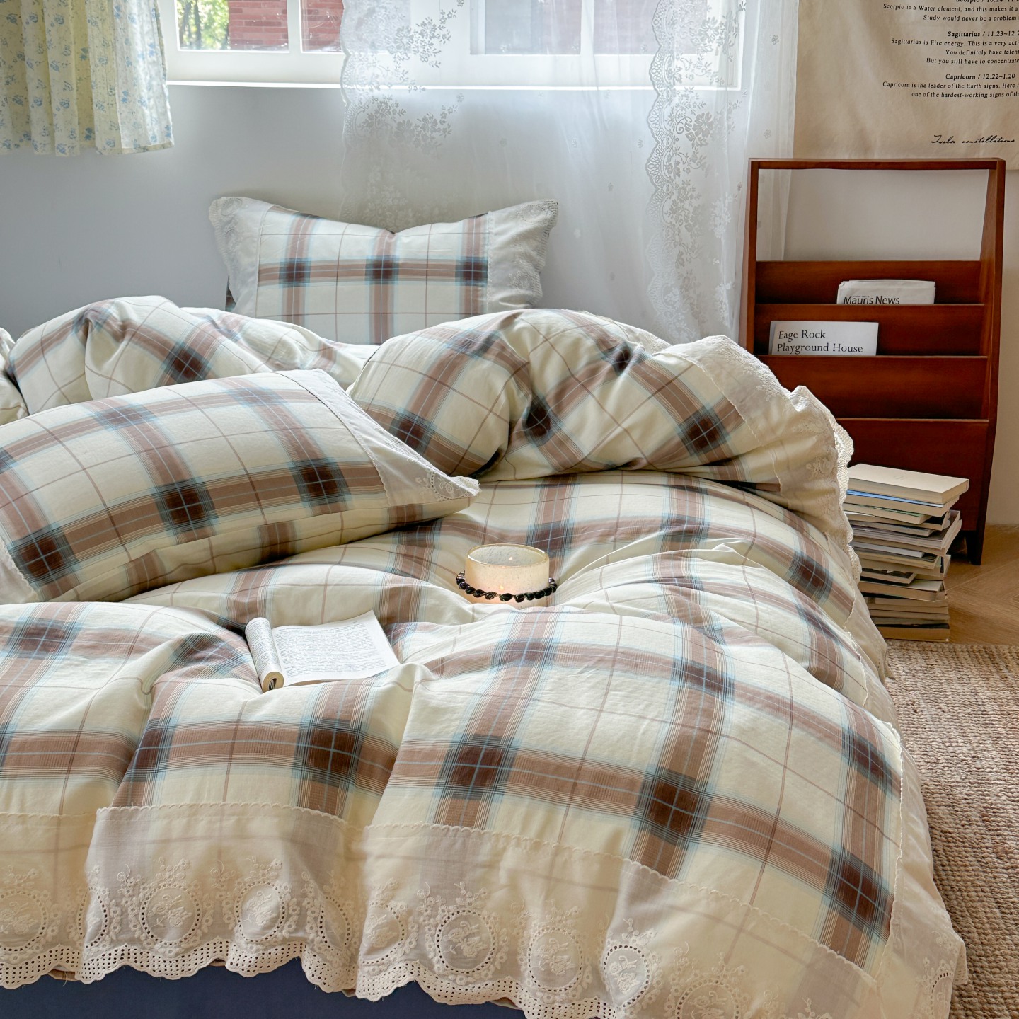 觅糖家纺 2025新款A类全棉云感双层纱蕾丝花边四件套 蔓莓格