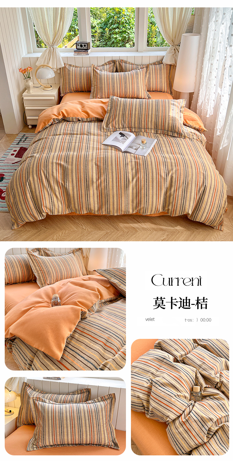 当前位置: 91家纺网 > 商品网购 > 床品套件 > 四件套 > 普通磨毛四件套 > 简约家纺 2025新款全棉磨毛四件套 莫卡迪-桔