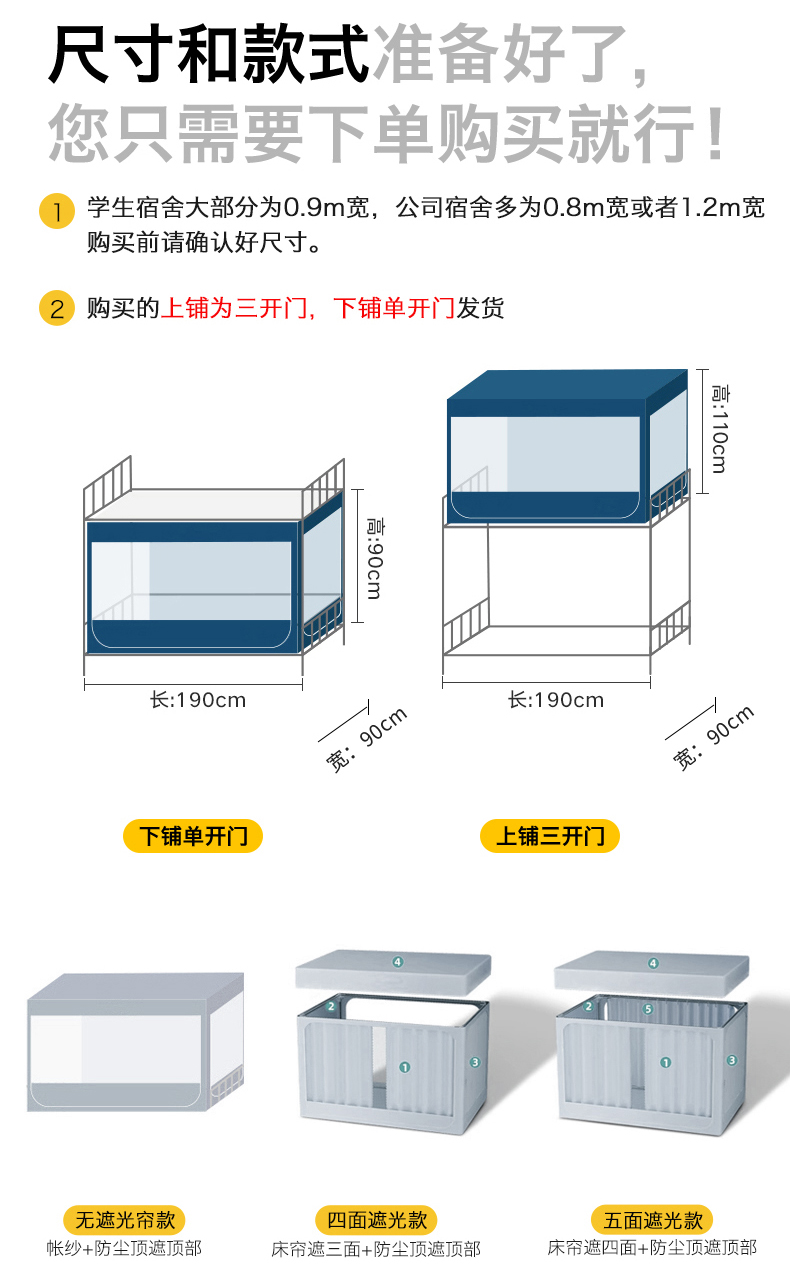免安装90*190*110上铺三开门 | ¥105.00 |