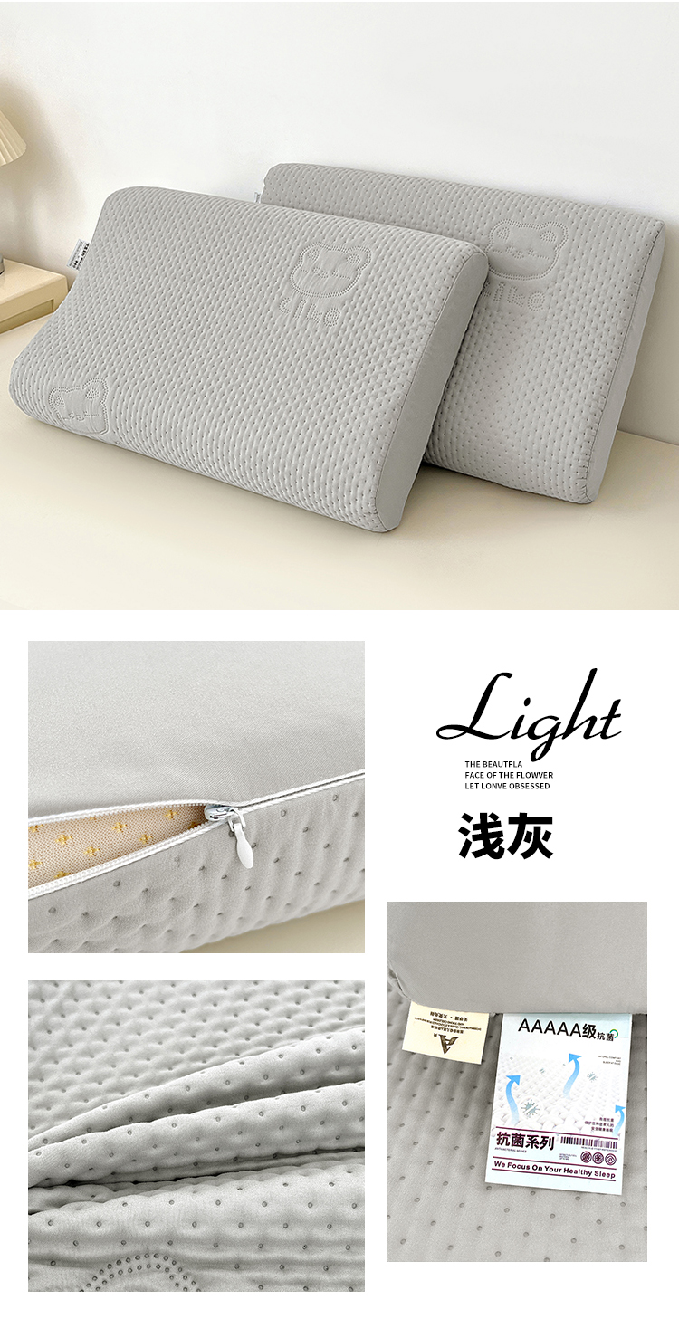 商品名称:曼陀罗 2025新款爱豆熊乳胶记忆棉枕套 爱豆熊-浅灰