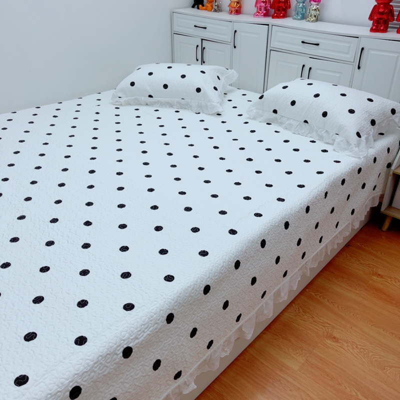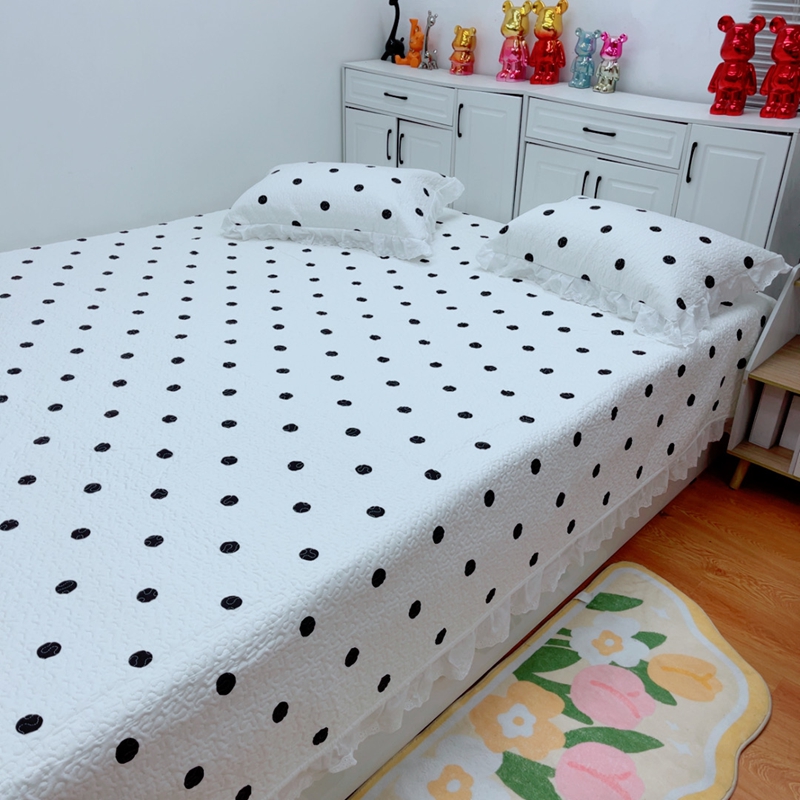 当前位置: 91家纺网 > 商品网购 > 床品套件 > 四件套 > 全棉普通四件套 > 暖居 2025新款纯棉绗缝夹棉榻榻米支持定制防滑全棉印花小碎花农村大炕盖三件套系列 波点白