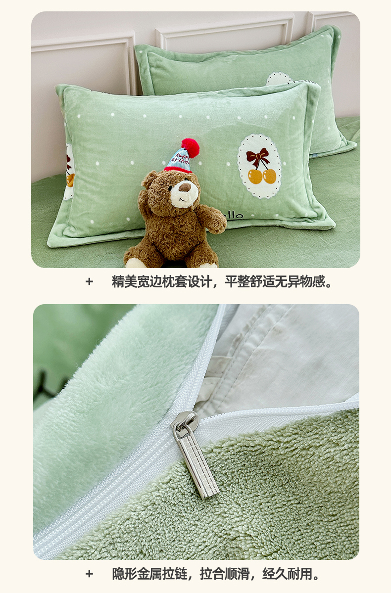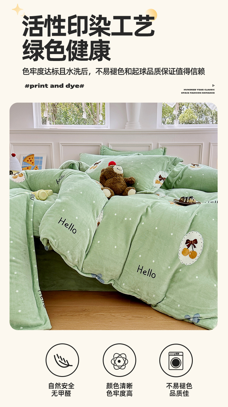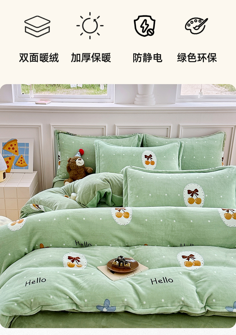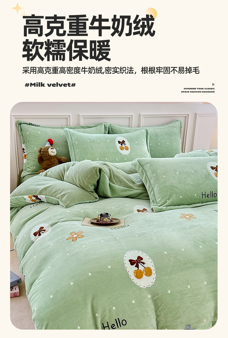 当前位置: 91家纺网 > 商品网购 > 床品套件 > 四件套 > 牛奶绒四件套 > 家贝爱 2025新款A类牛奶绒印花四件套 波点樱桃